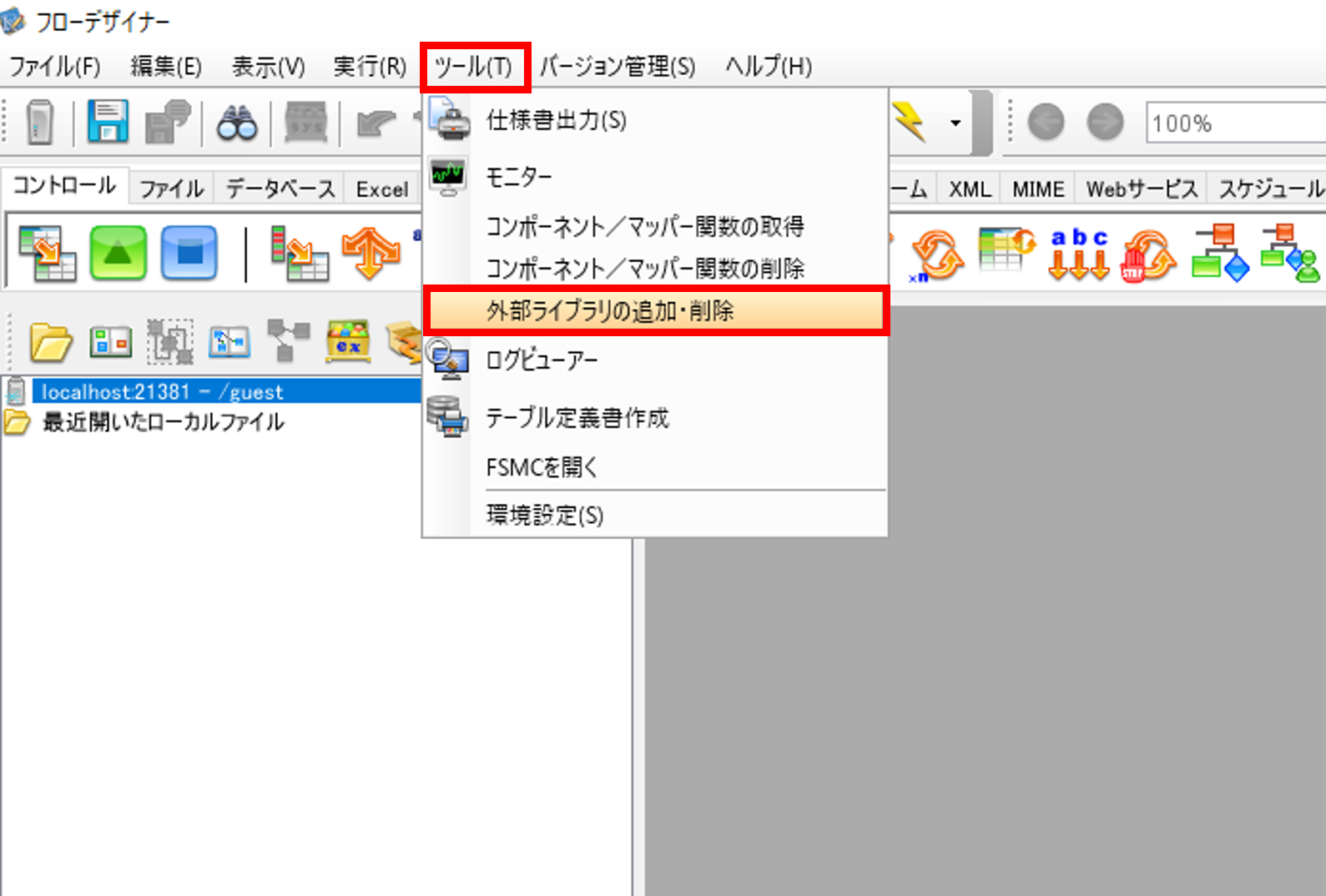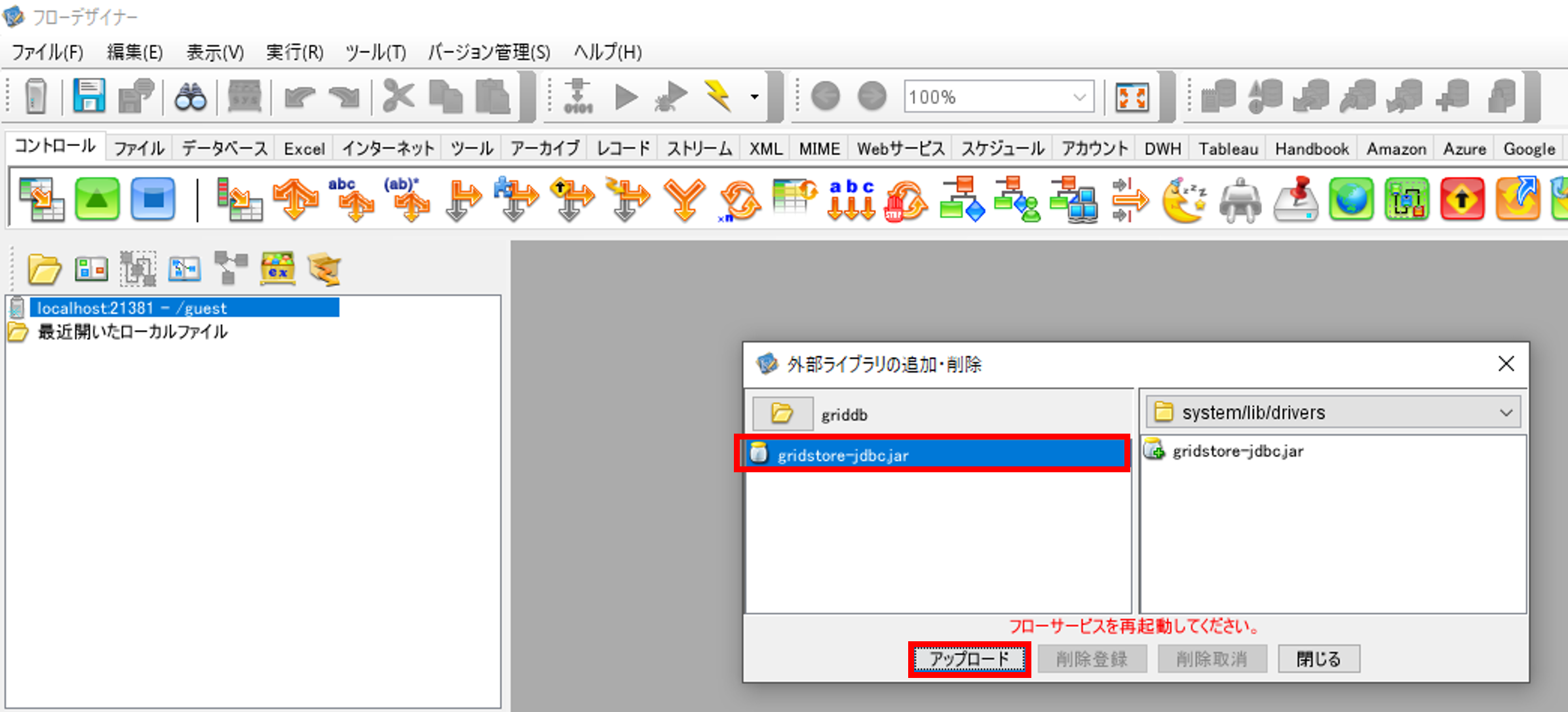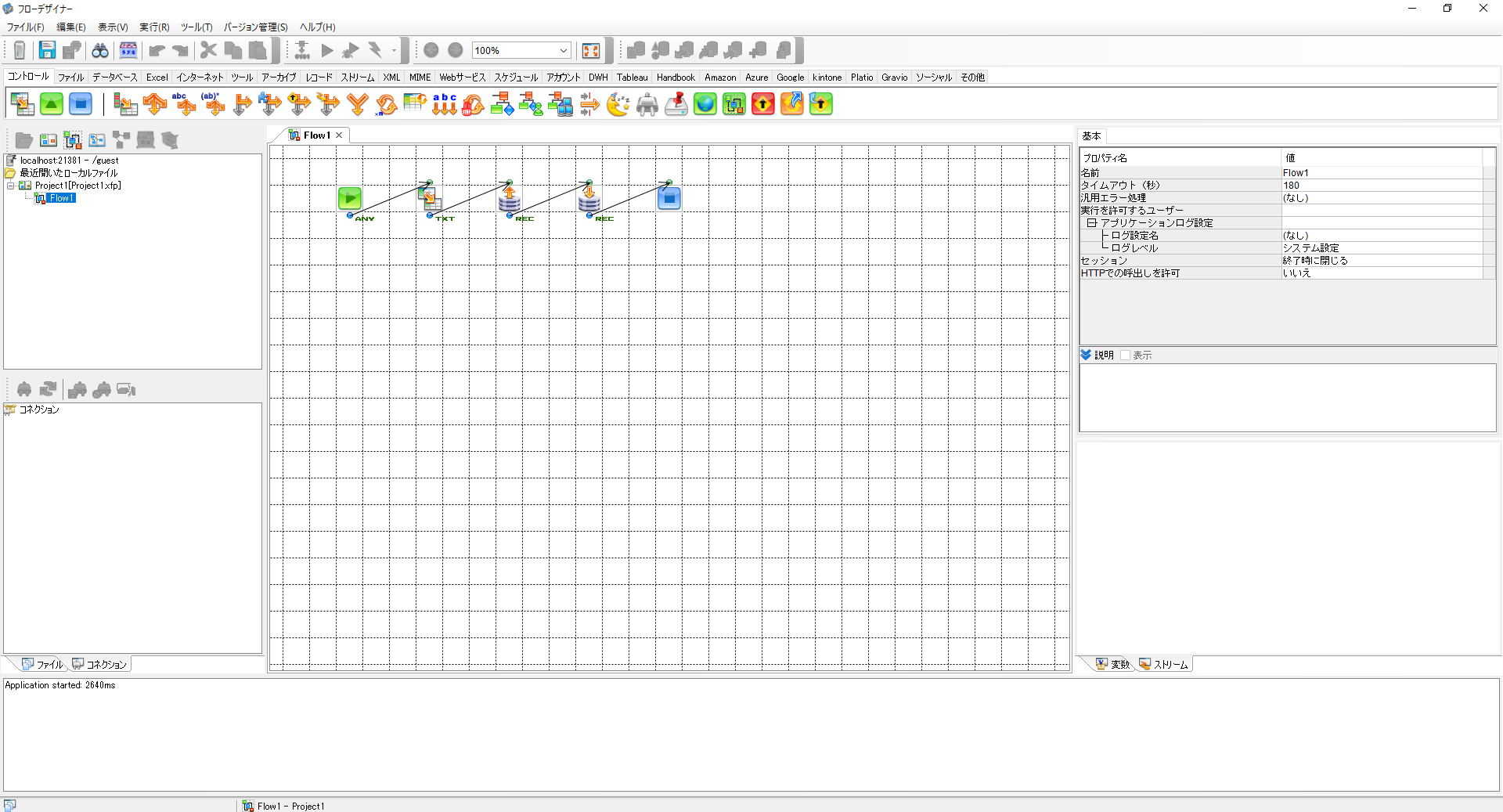 フローデザイナーは、データの抽出・変換・配信などの一連の処理手順をグラフィカルにあらわすフローを作成・保存・実行するGUIベースの統合設計環境ツールです。フローデザイナーでフローを作成し、フローサービスに登録して、実行するというのが基本的な設計手順になります。