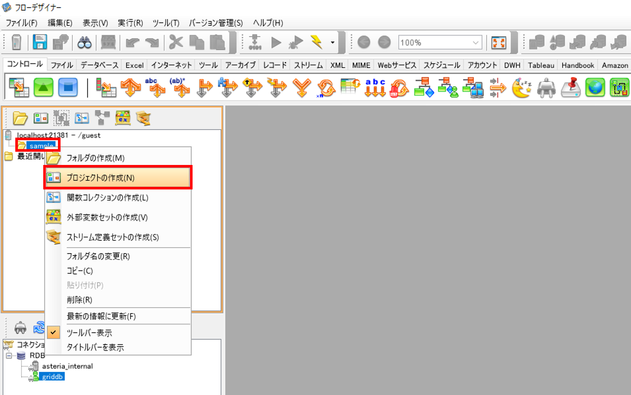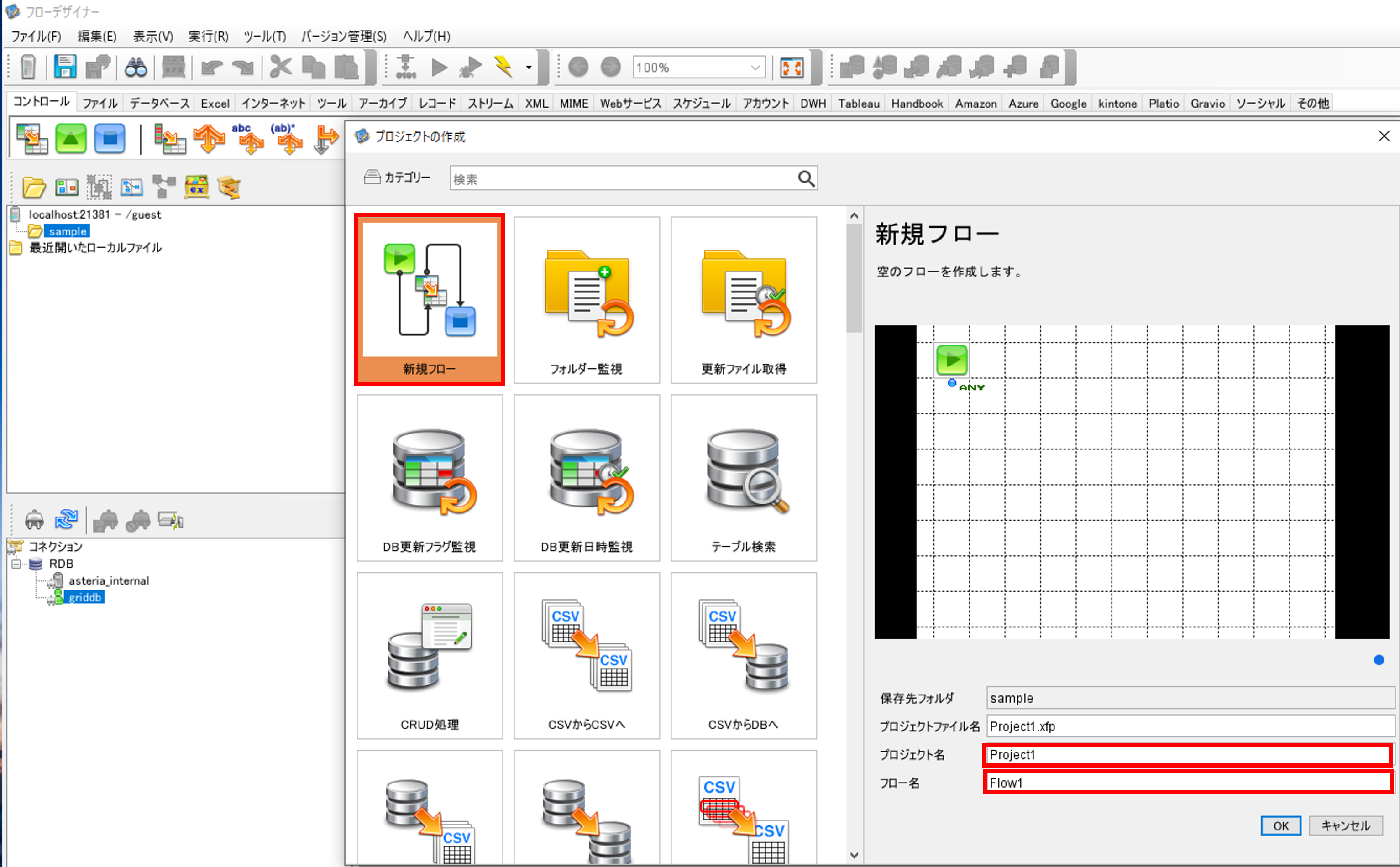 ASTERIA Warpではこのフローと呼ばれる全体の処理を作成して、集計処理を実現します。