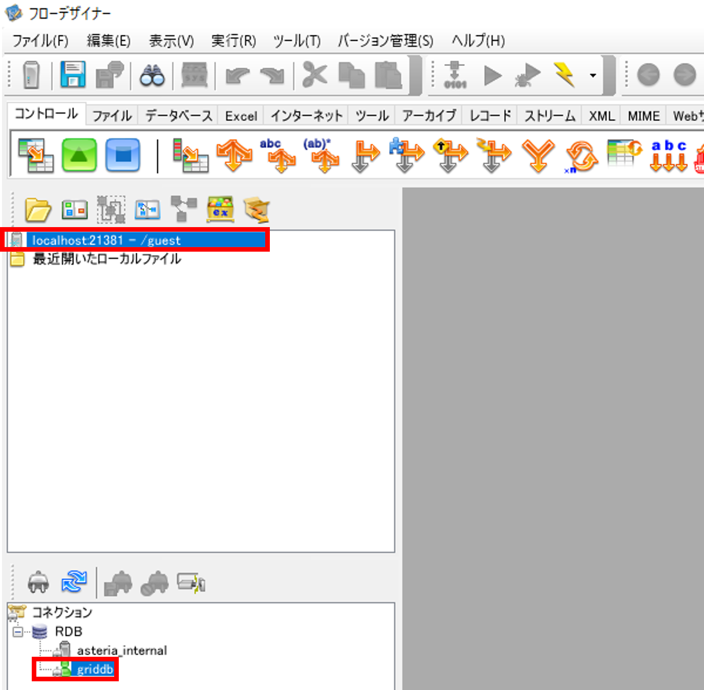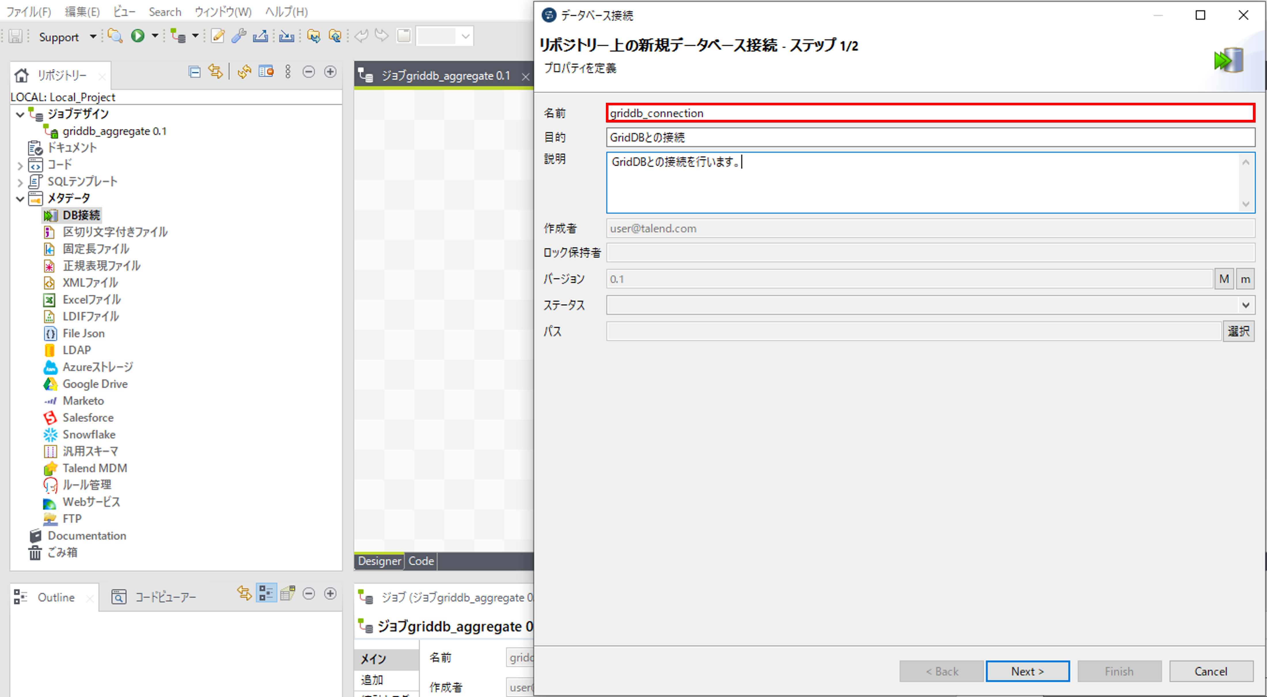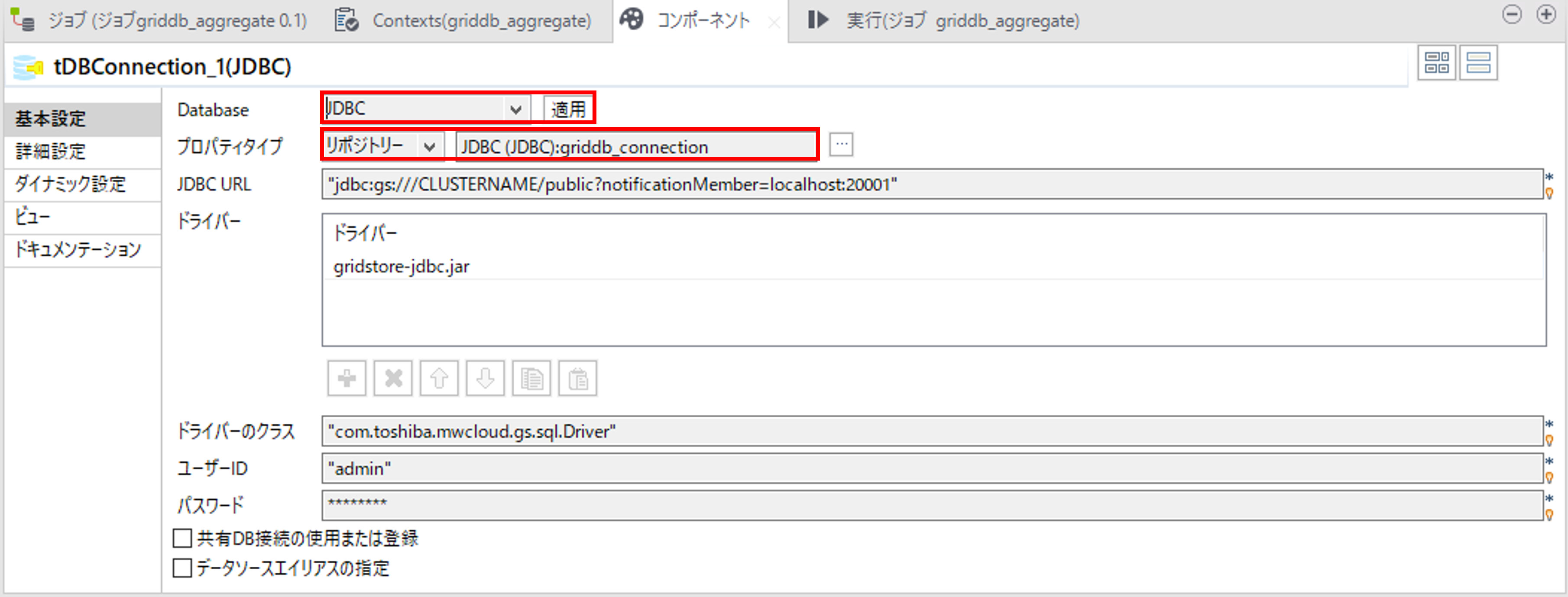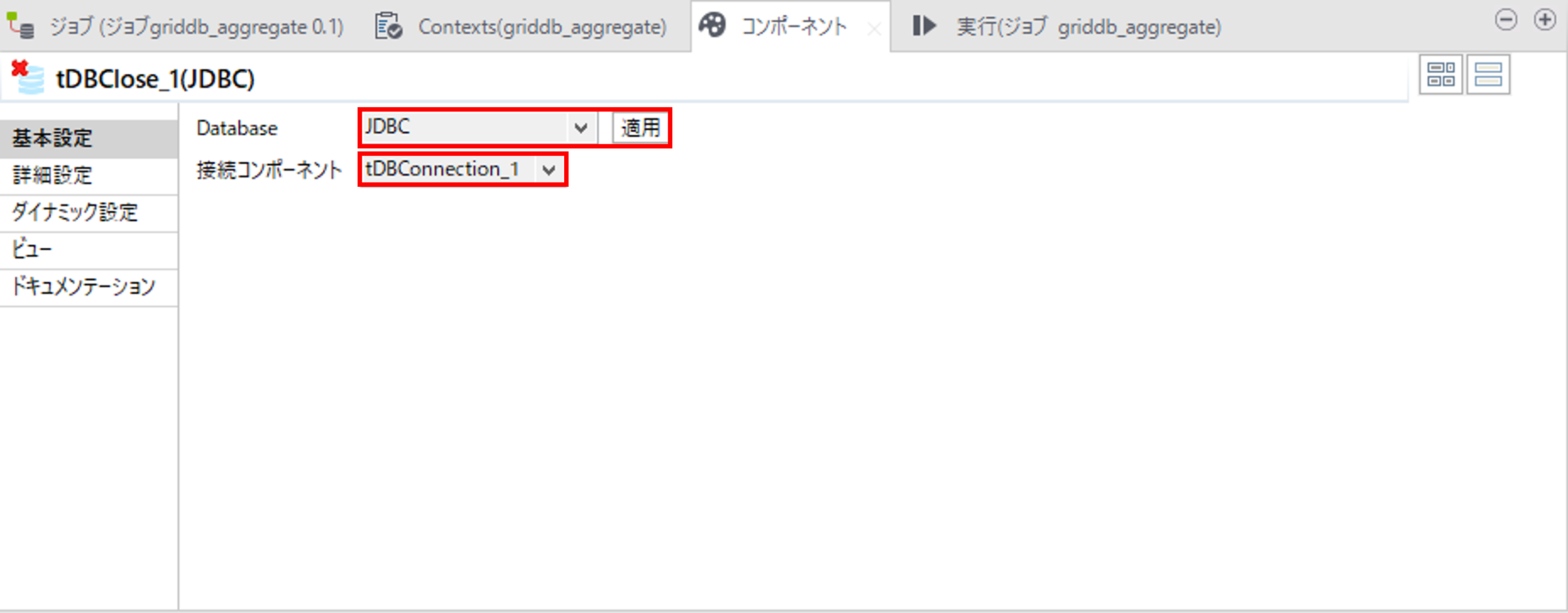 tDBConnectionコンポーネントでGridDBとのコネクションを作成します。