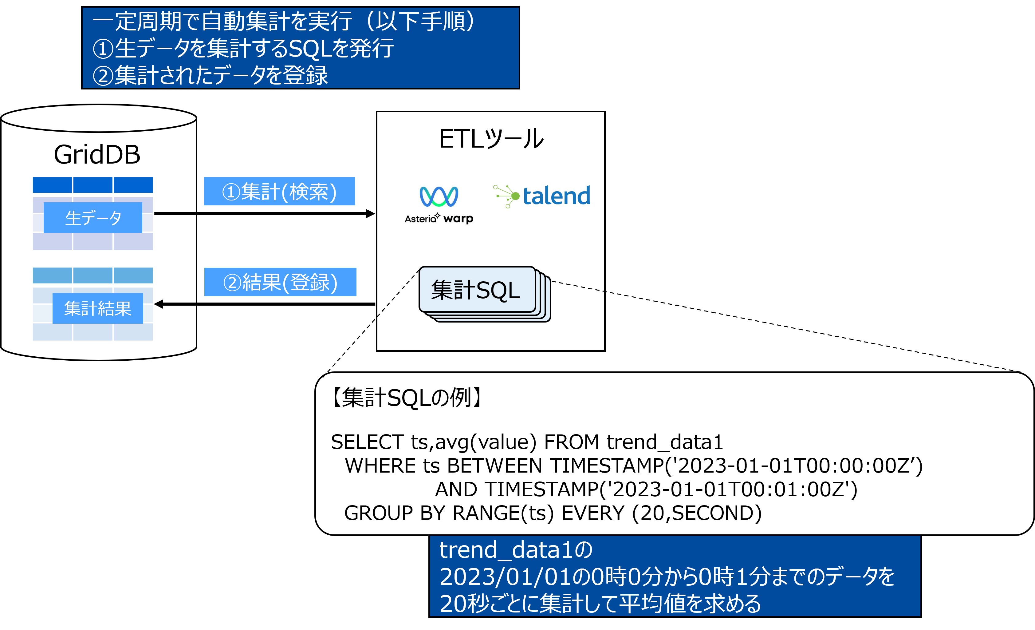 本ガイドでは、この自動集計をGridDBとETLツールを用いて、実現する方法を説明します。