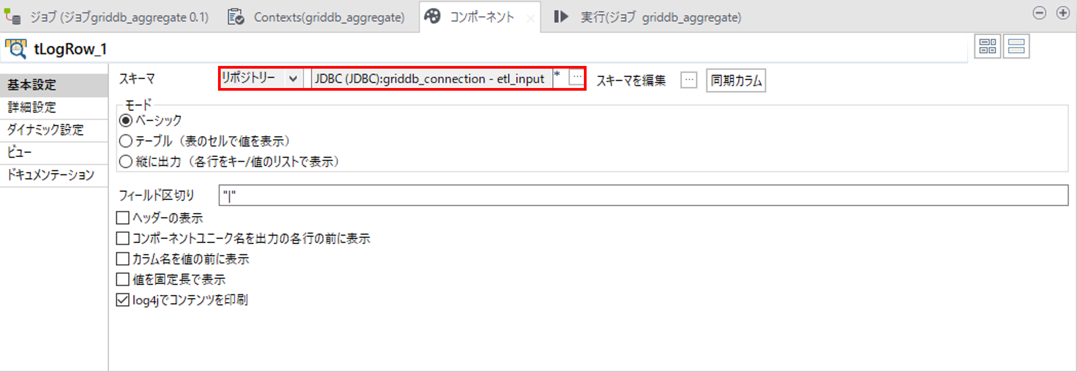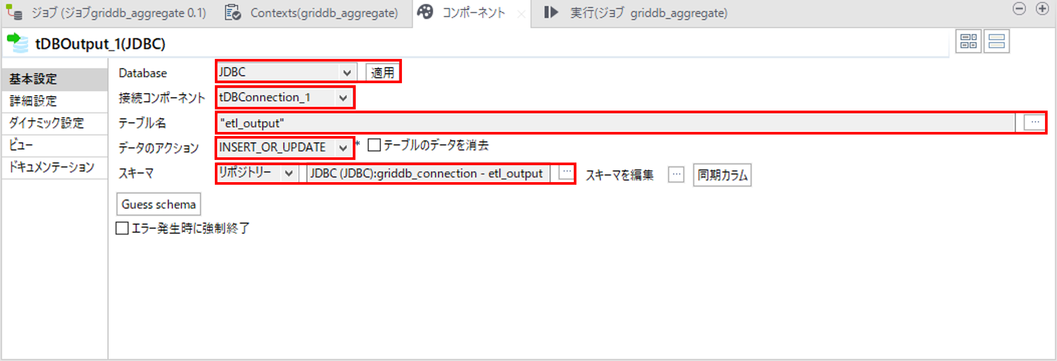 tDBOutputコンポーネントでGridDBにデータを登録します。