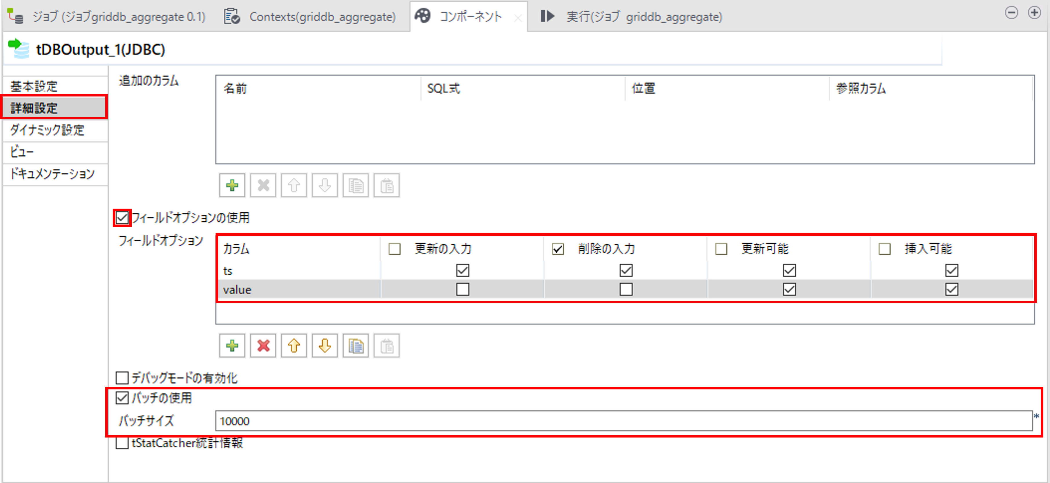 バッチ更新を使用する場合は「バッチの使用」にチェックを入れて、「バッチサイズ」を指定します。