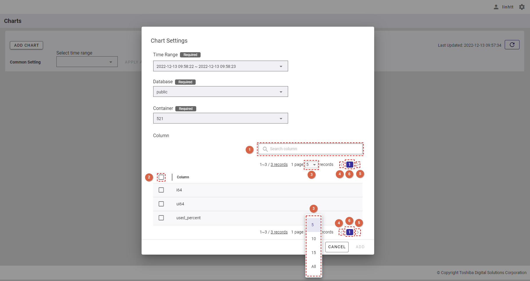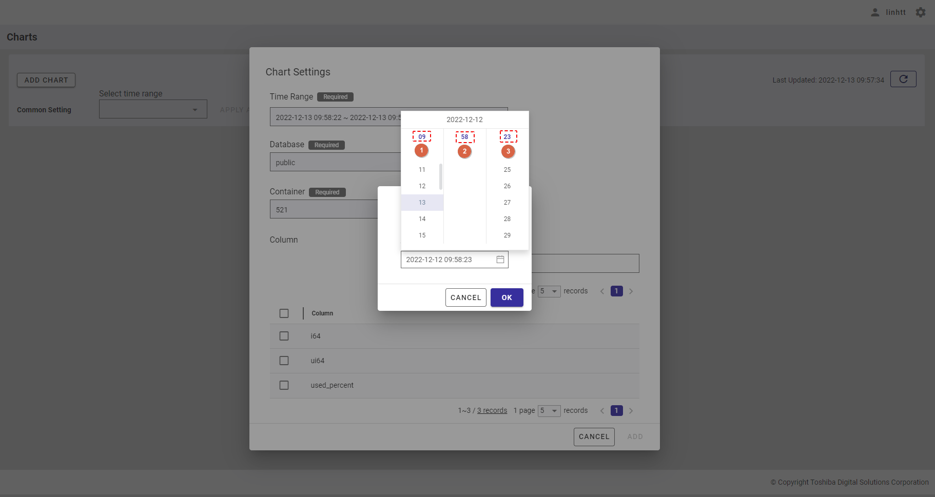 ■時系列圧縮を設定したコンテナが存在した場合の出力例