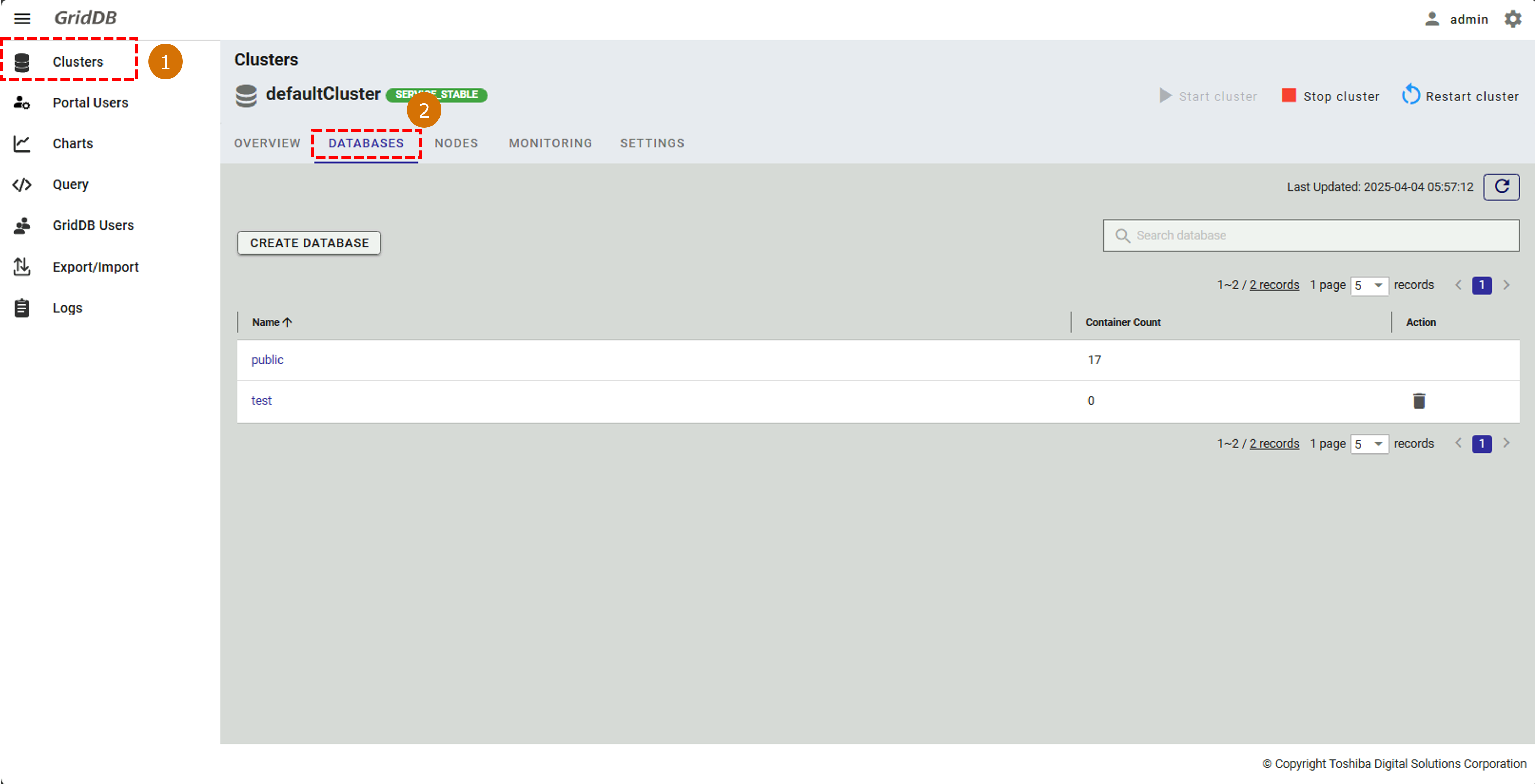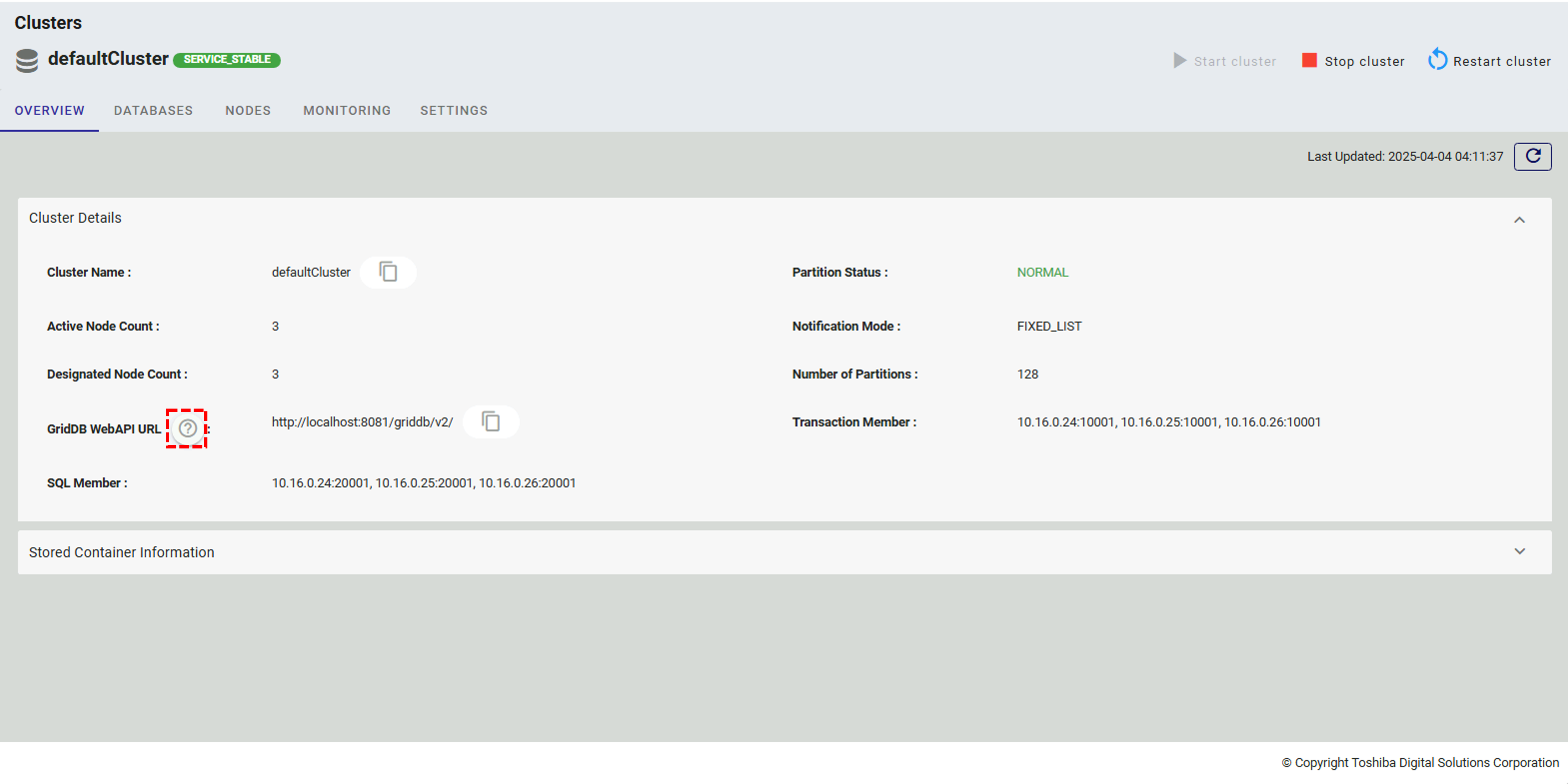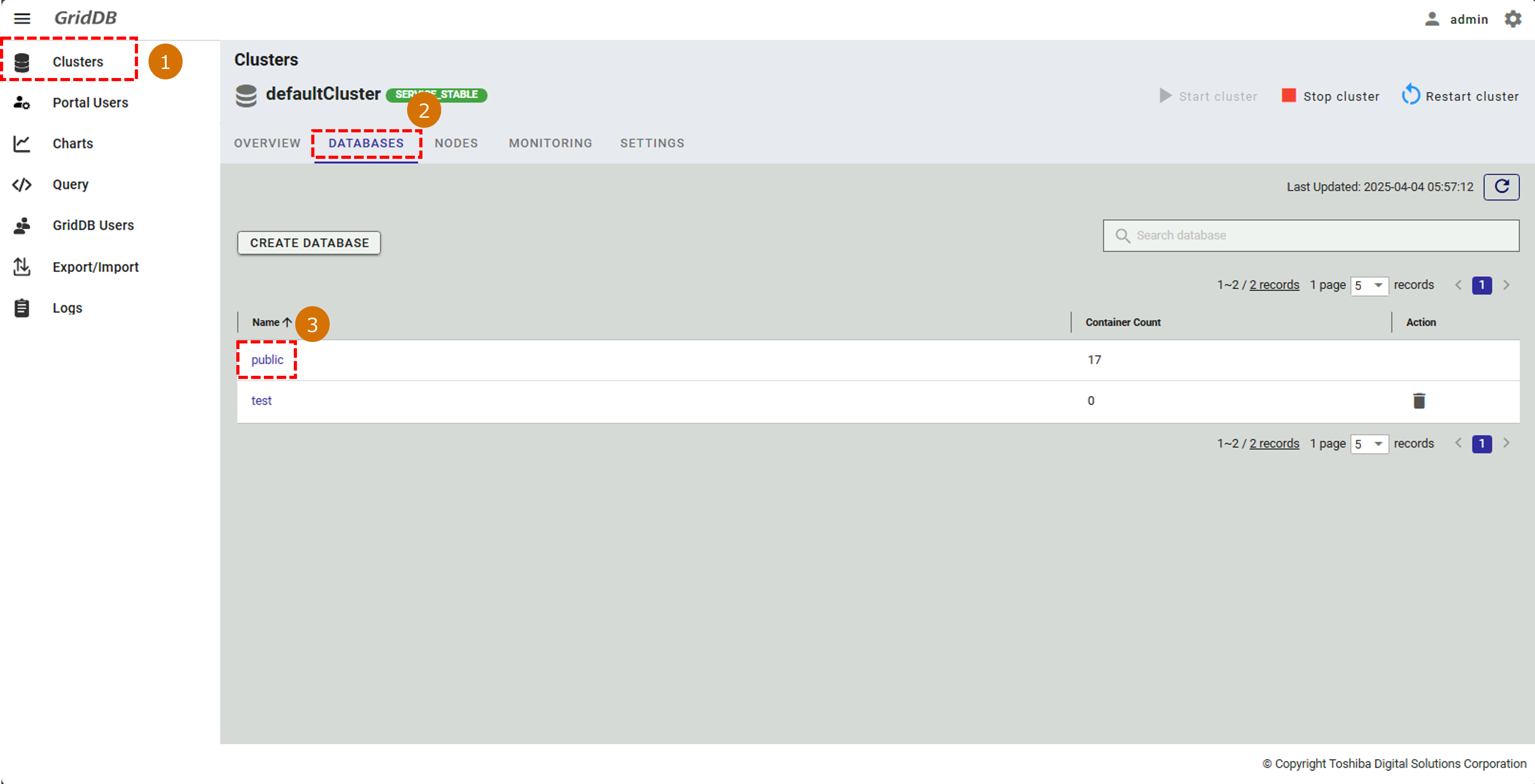 V4データベースを確認するために、GridDB V4クラスタを起動します。GridDBクラスタの起動は、サービスや各種ツールで行うことができます。操作の詳細については、下記を参照ください。