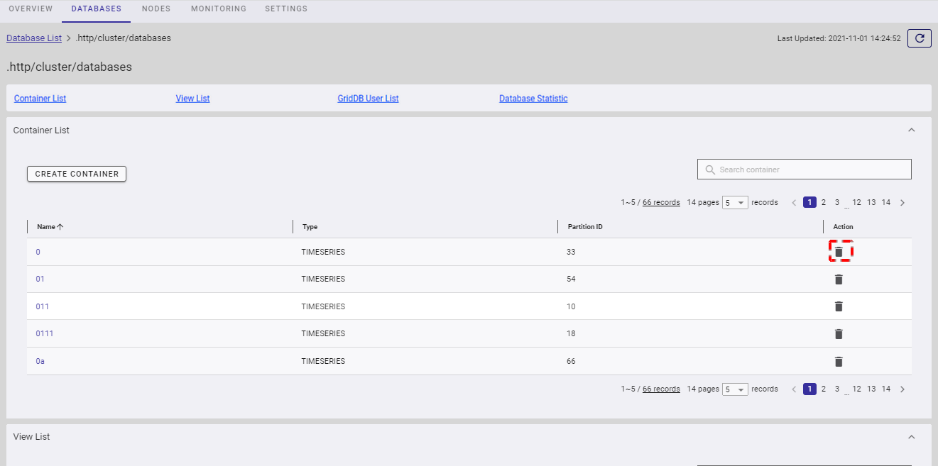 #時系列圧縮を設定されたc04コンテナを削除します。 gs[public]> dropcontainer c04 gs[public]> select database_name, table_name from "#tables" where EXPIRATION_TYPE='ROW'; 0 件ヒットしました。