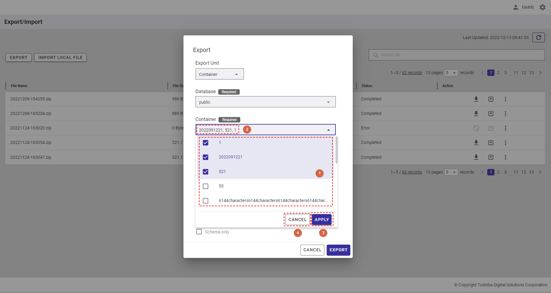 #gs_exportコマンドで、c04コンテナのバックアップを取得します。 $ mkdir c04 $ cd c04 $ gs_export -u admin/admin -d public -c c04■時系列圧縮を設定したコンテナの削除例
