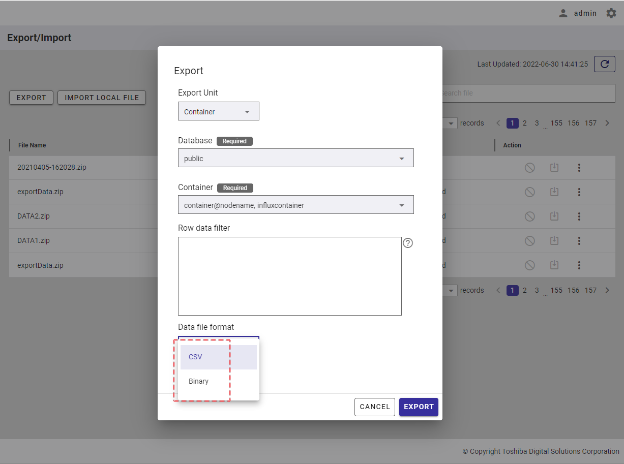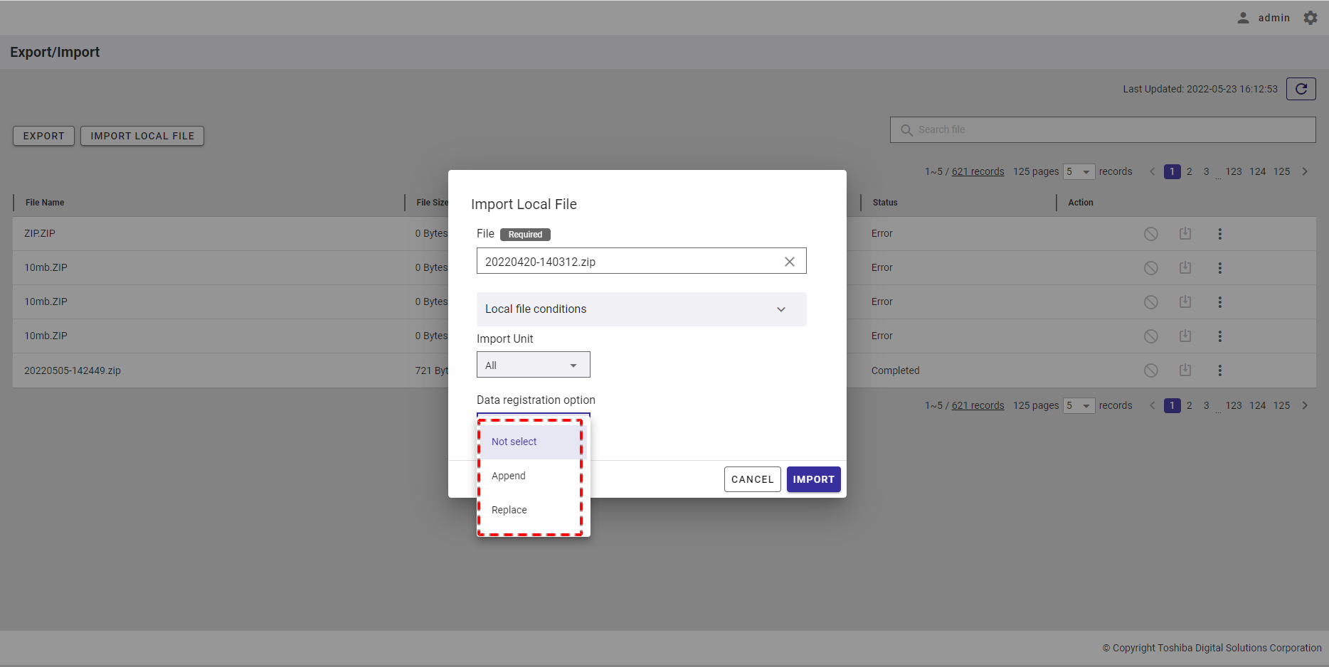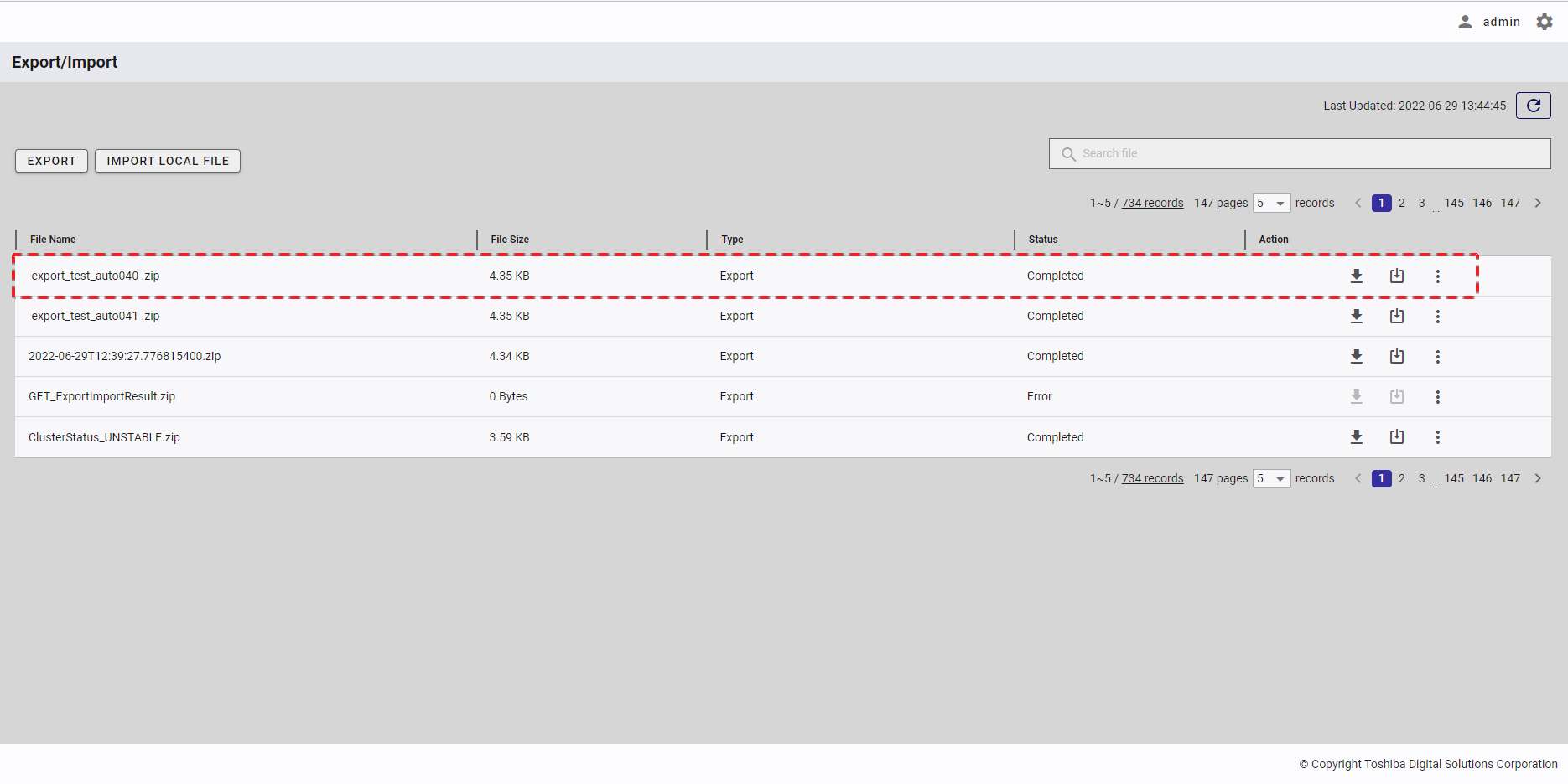 インポートツールを実行する前に、エクスポートツールが出力したメタデータファイルを編集して、コンテナに設定されているロウ期限解放設定、時系列圧縮設定を削除してください。削除しない場合、V5クラスタへのインポートに失敗します。