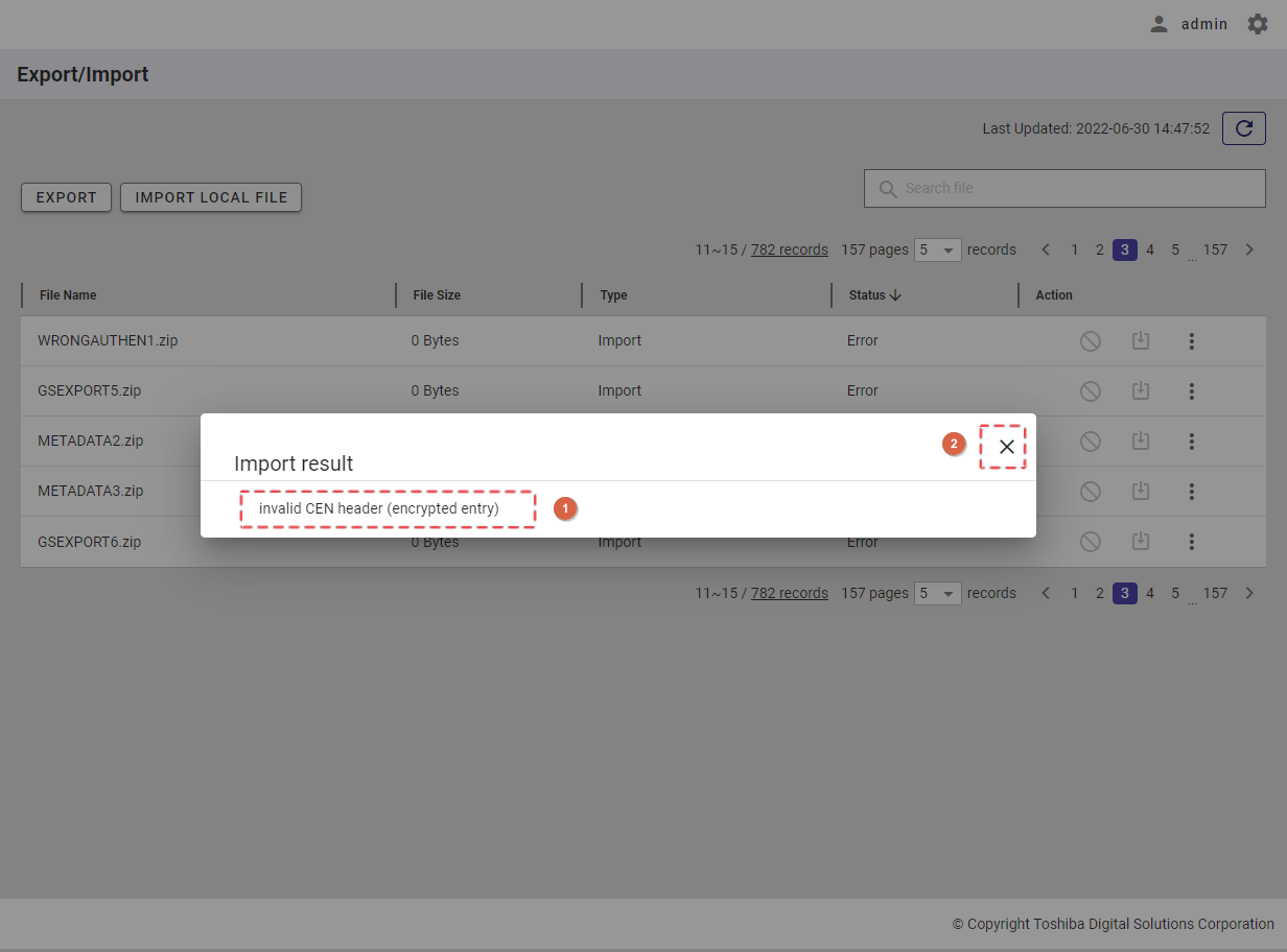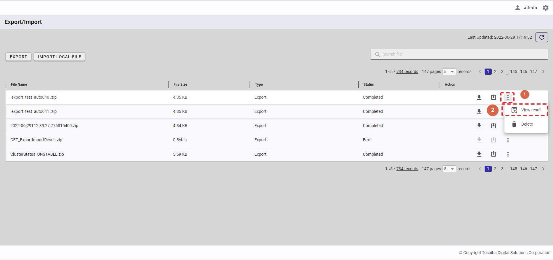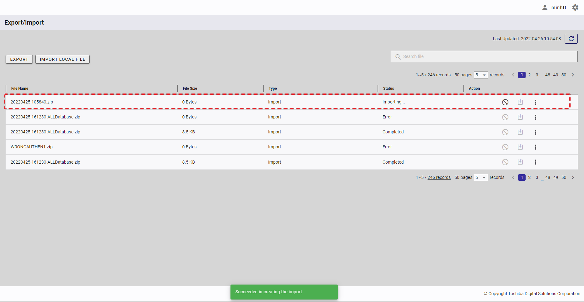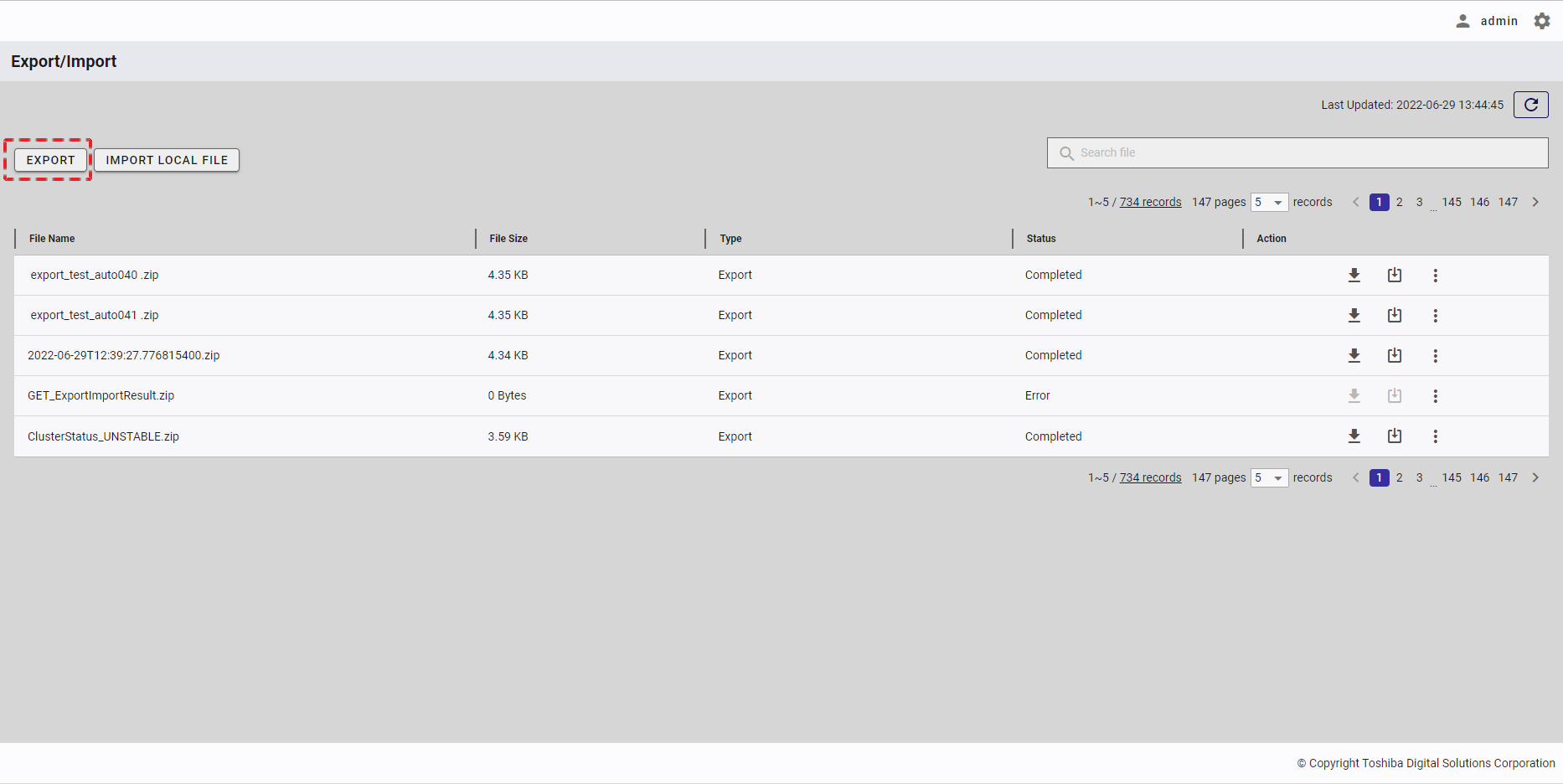 インポートツールを実行する前に、エクスポートツールが出力したメタデータファイルを編集して、コンテナに設定されているロウ期限解放設定、時系列圧縮設定を削除してください。削除しない場合、V5クラスタへのインポートに失敗します。