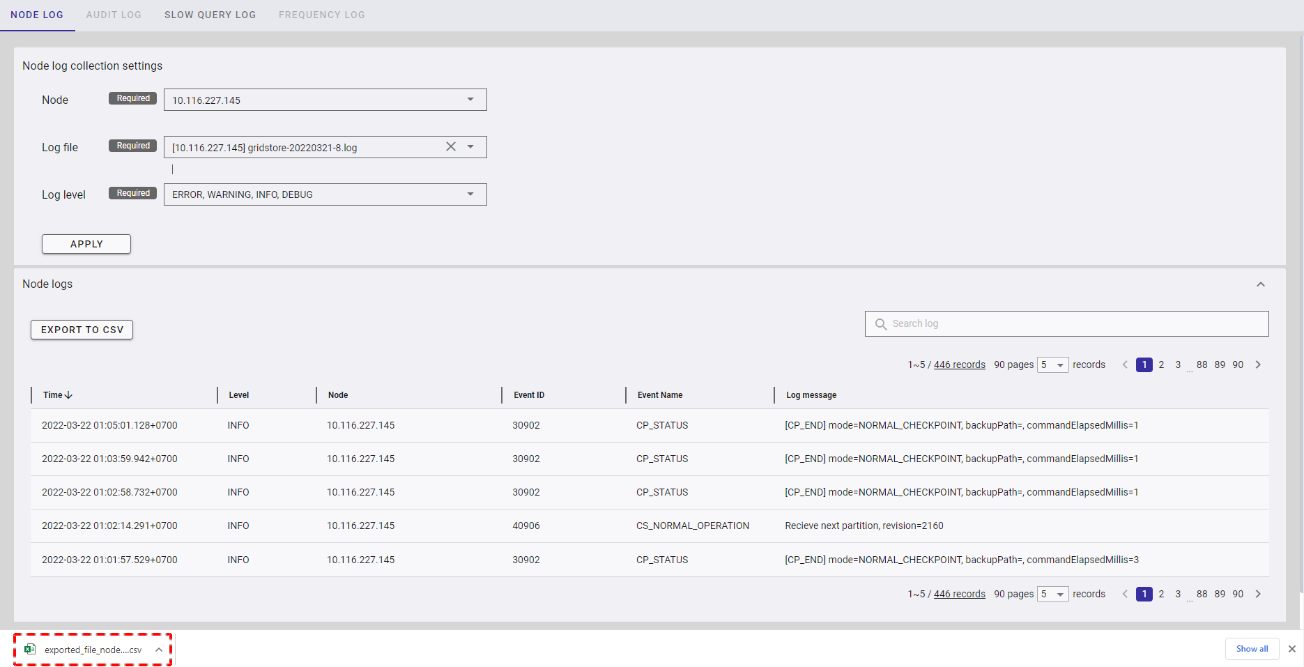 2021-12-26T16:10:41.211+09:00 RHEL83-1 31897 WARNING MAIN [100002:CT_PARAMETER_INVALID] Unknown parameter (source=gs_node.json, group=dataStore, name=storeWarmStart)