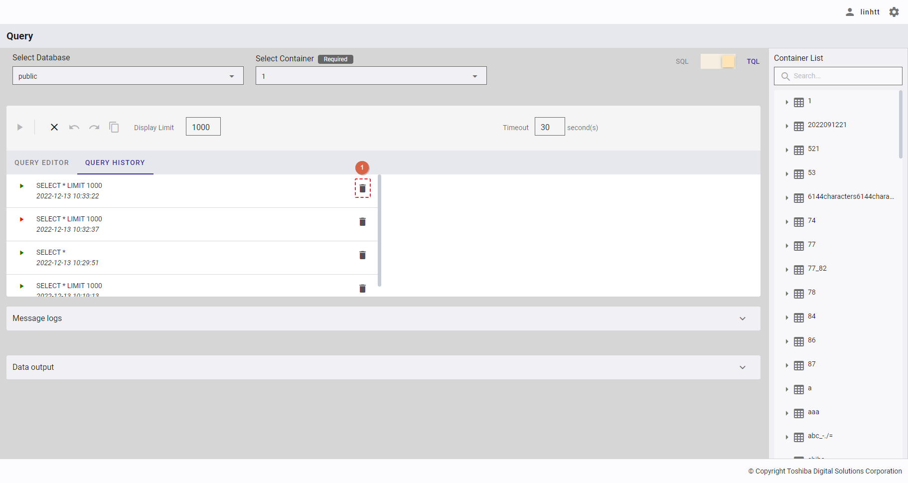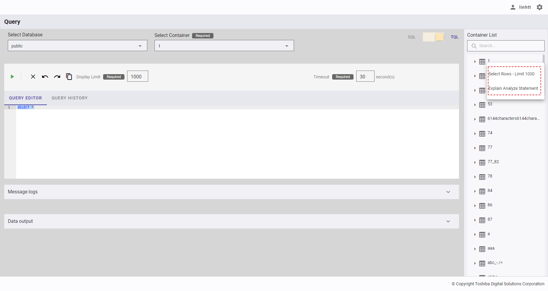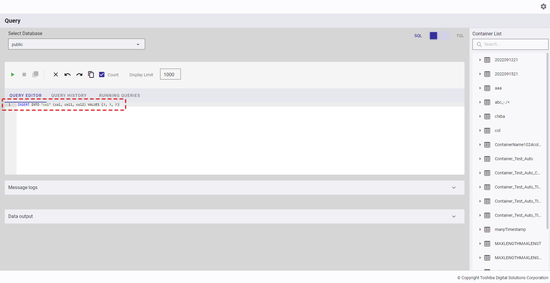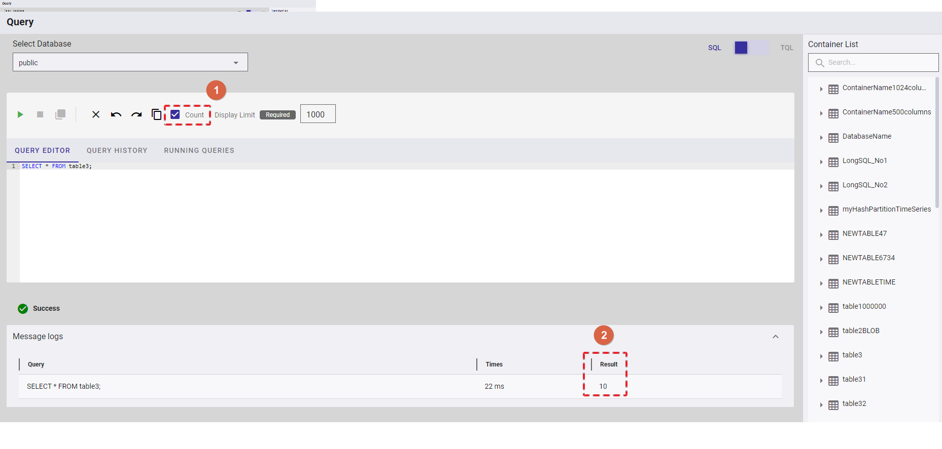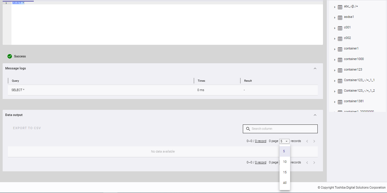 #ロウ期限解放が設定されたc03コンテナを削除します。 gs[public]> dropcontainer c03 gs[public]> select database_name, table_name from "#tables" where EXPIRATION_TYPE='ROW'; 0 件ヒットしました。