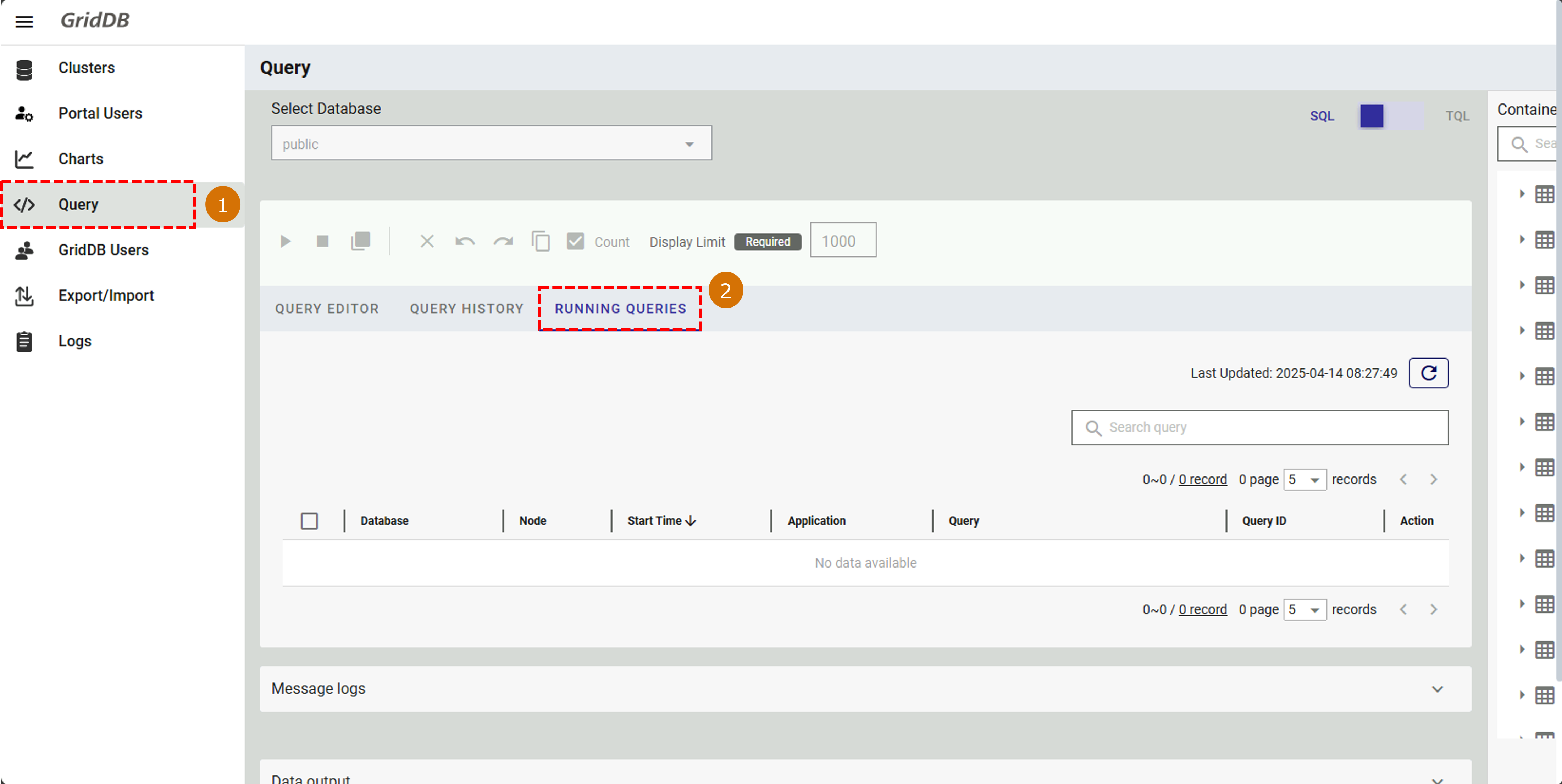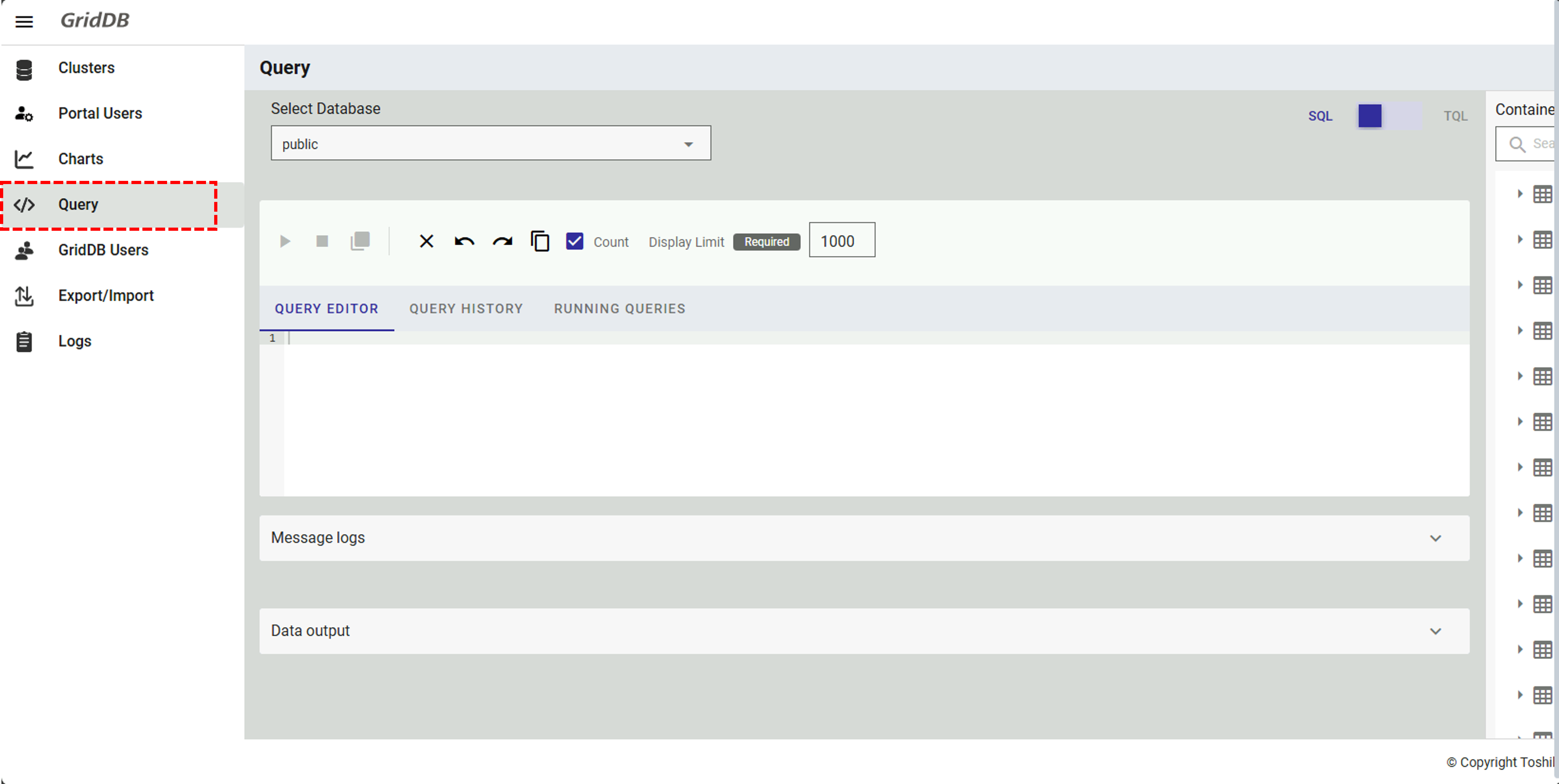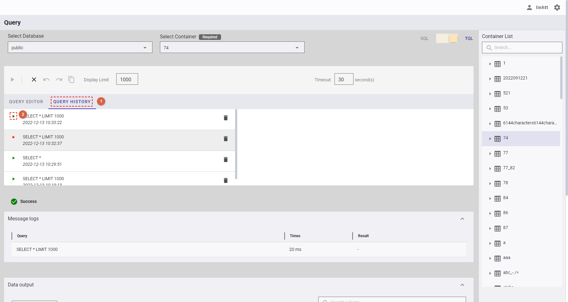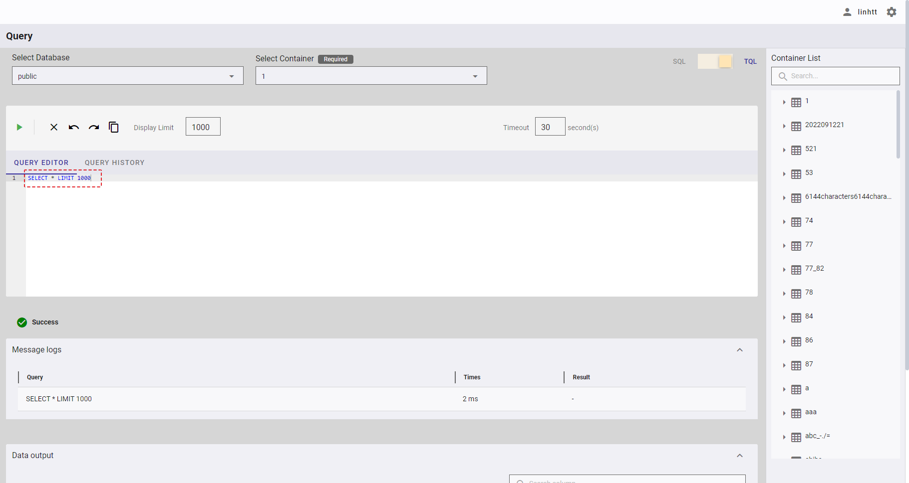 #ロウ期限解放が設定されたc03コンテナを削除します。 gs[public]> dropcontainer c03 gs[public]> select database_name, table_name from "#tables" where EXPIRATION_TYPE='ROW'; 0 件ヒットしました。