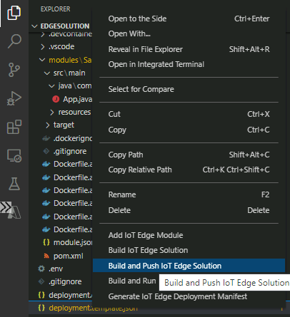 Press F1 to select "Azure IoT Edge: New IoT Edge Solution."