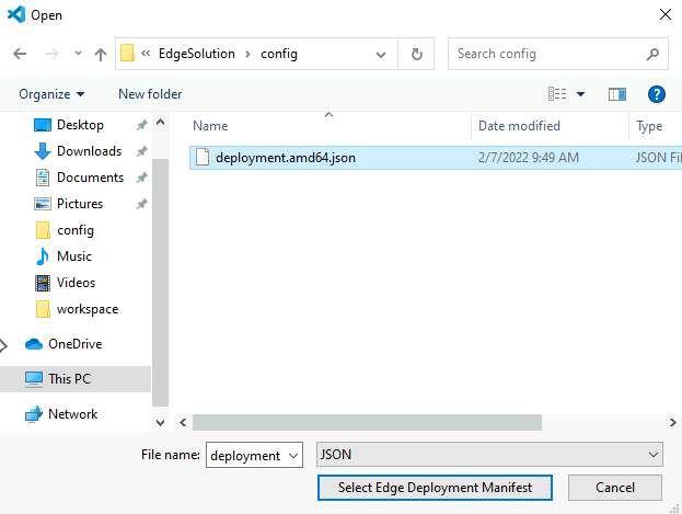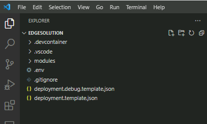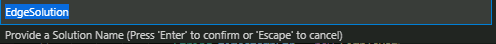 Specify any folder to create a solution. Once the command palette opens to specify a solution name, select the default "EdgeSolution."