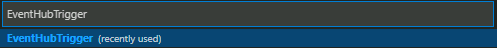 Continue to select the default value until a command palette for entering the name of the Event hub (Notice it is not "IoT Hub", but this is not a problem) is displayed. For the name of the Event hub, enter the name of the IoT Hub previously created.