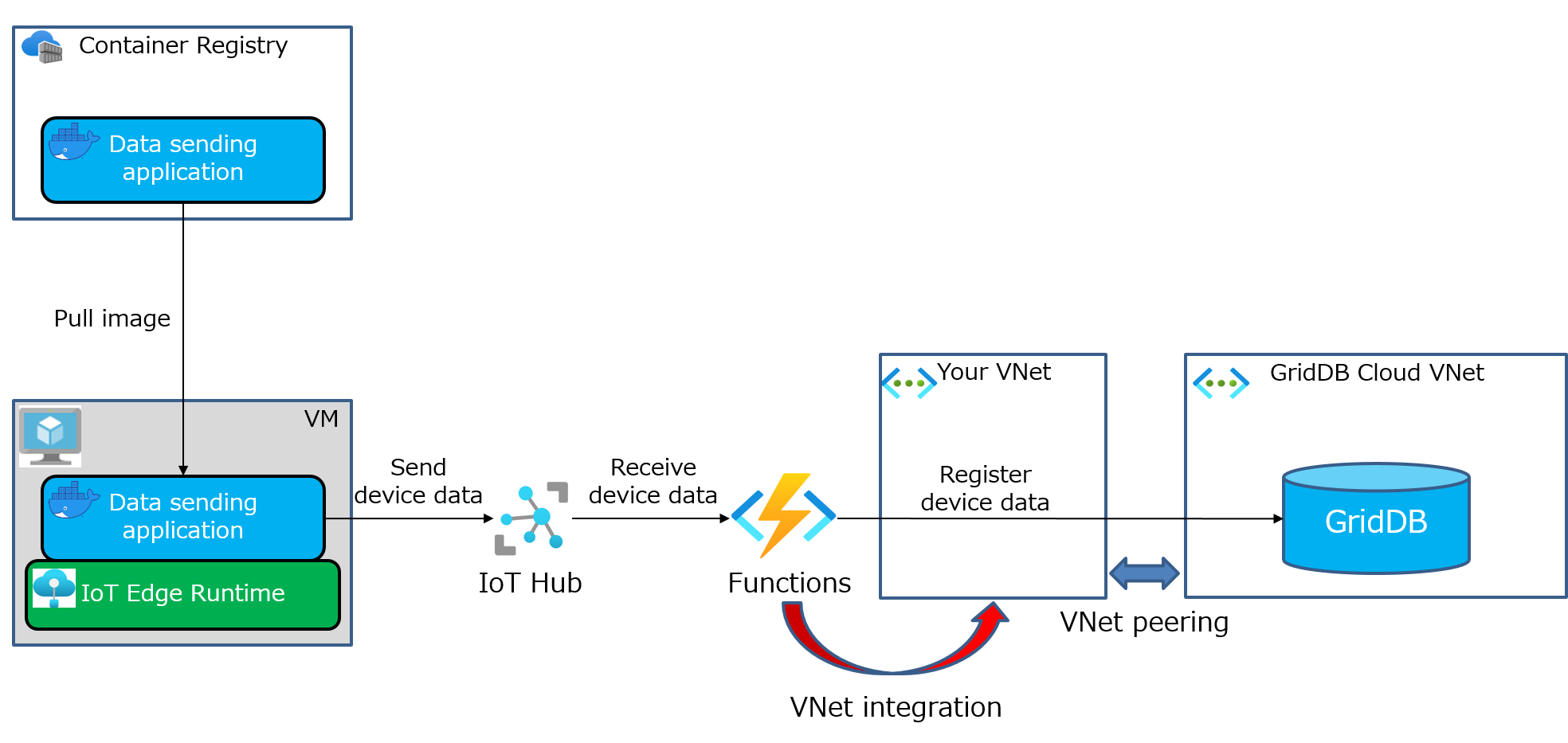 This document describes how to register data generated by an IoT device in GridDB by using Azure IoT Edge or Azure Functions.
