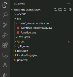 Open "EventHubTriggerJava1.java" to overwrite with the following code:
