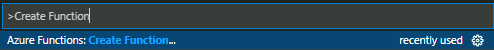 Then, press F1 to display a command palette to create a function. Select "Azure Functions: Create Function."