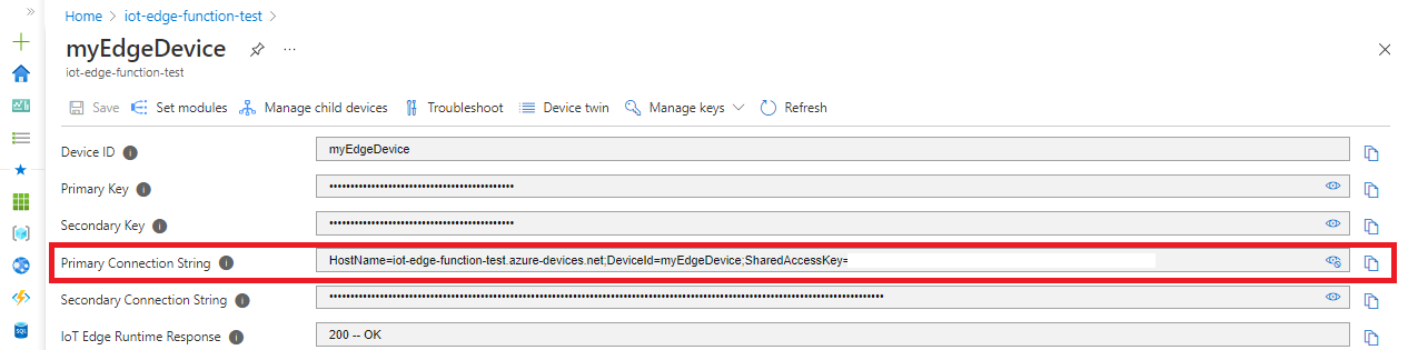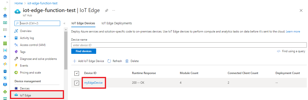| IoT Hub name | Enter the name of the IoT Hub created. | iot-edge-function-test |