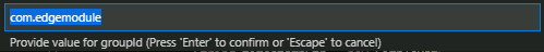 Once the command palette opens to specify a group ID, select the default "com.edgemodule."