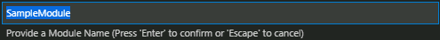 Once the command palette opens to specify a module name, select the default "SampleModule."