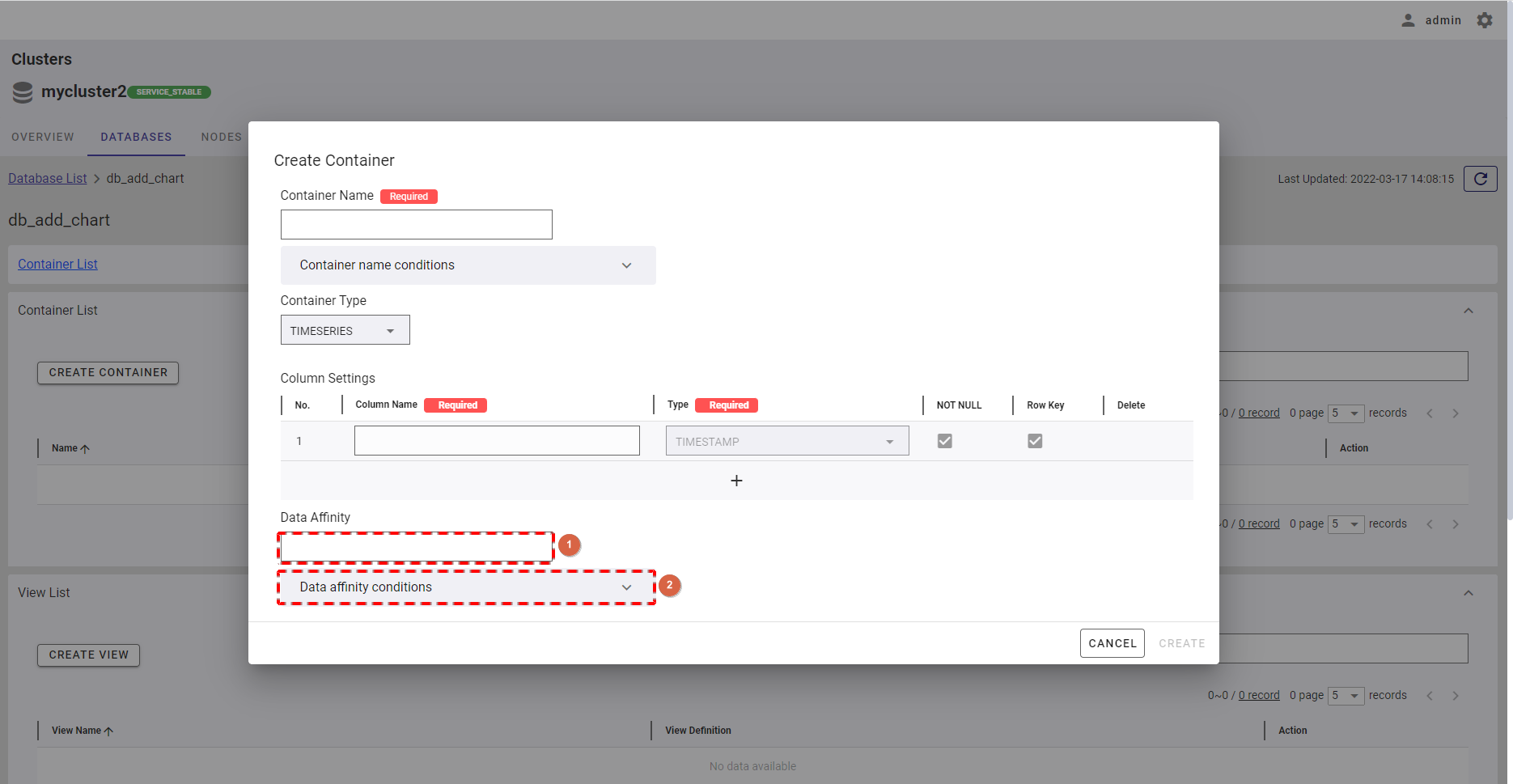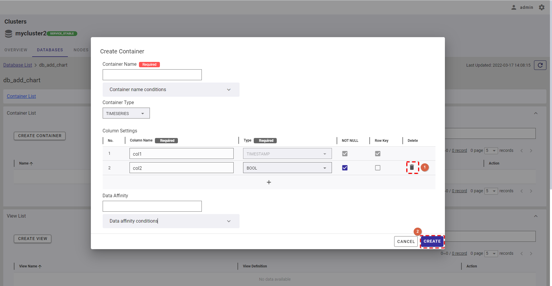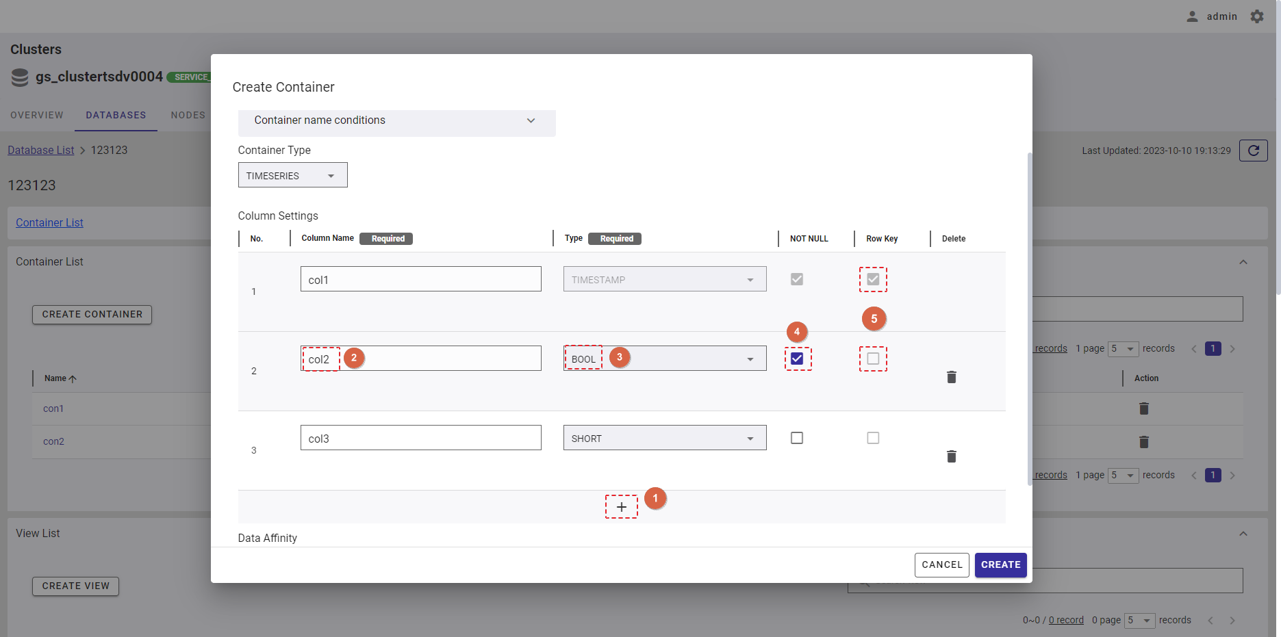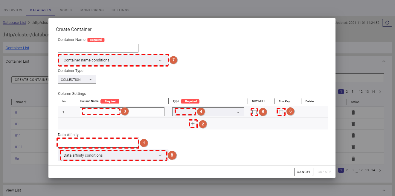 The [Create Container] dialog will appear. Enter the container details in the input fields.