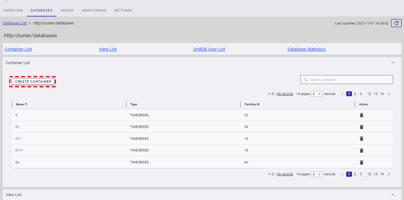 > select * from container_name; <- Retrieving container data using SQL or TQL