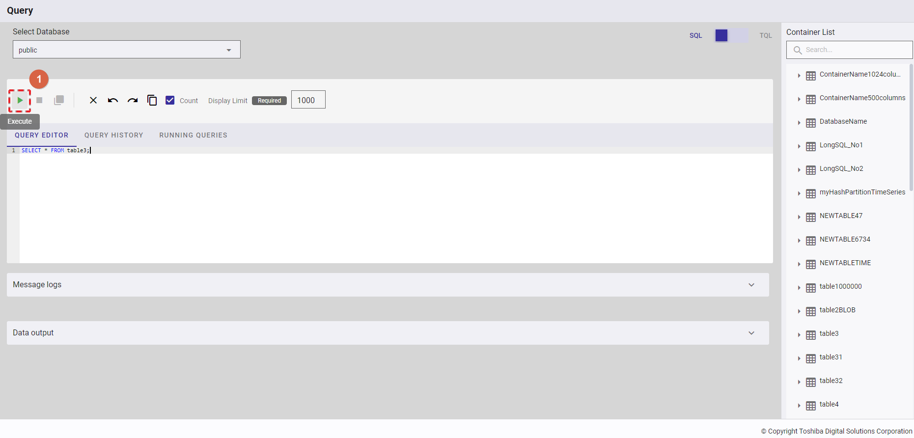 For more details, refer to the Executing a query in the "Management GUI Reference for GridDB Cloud."