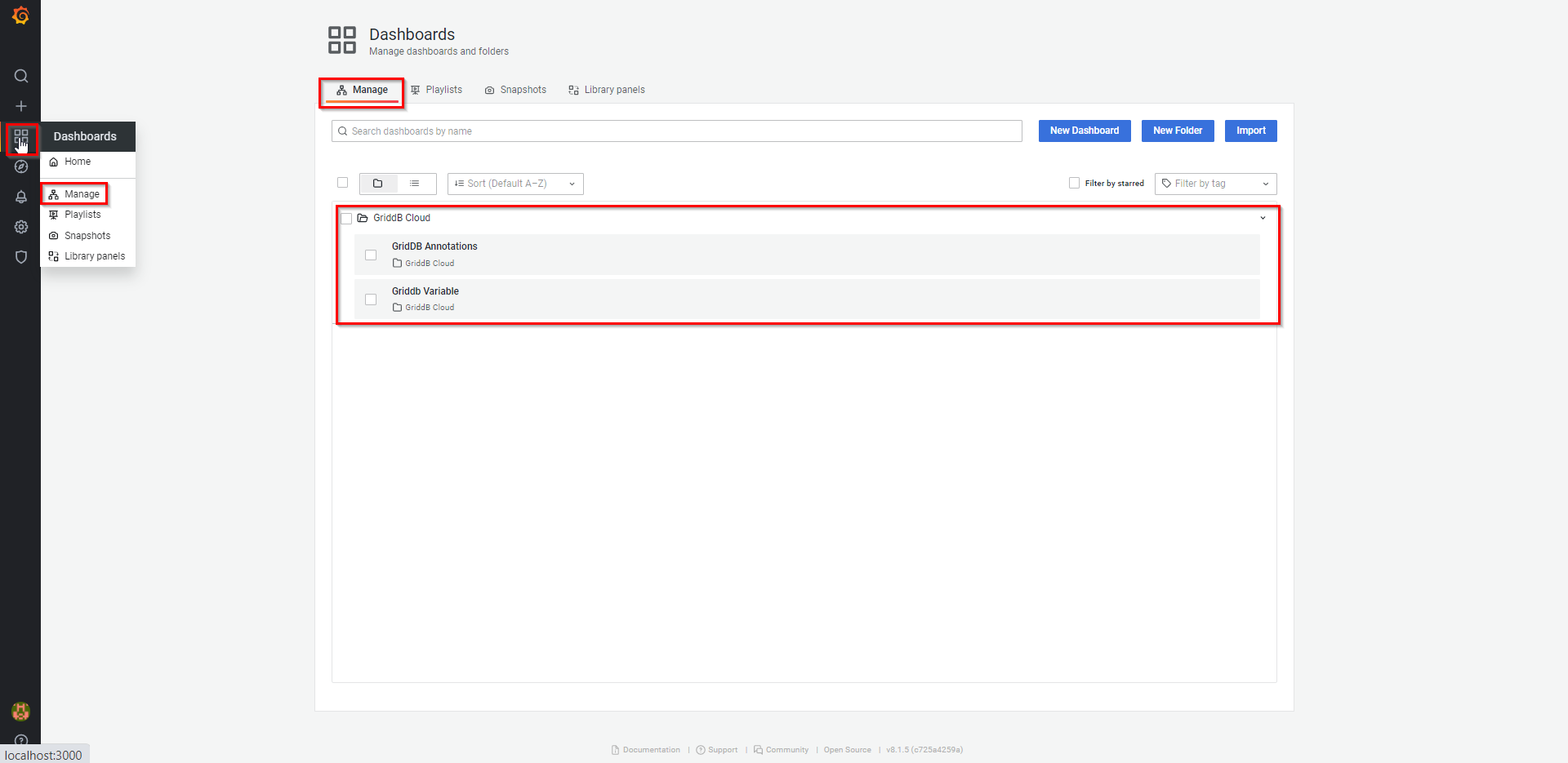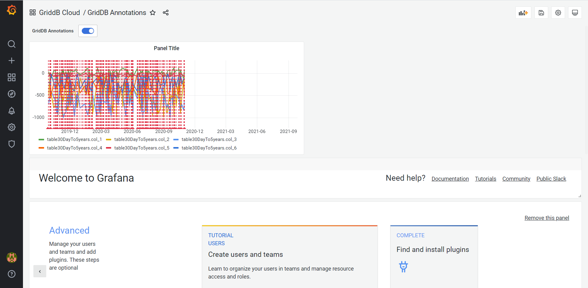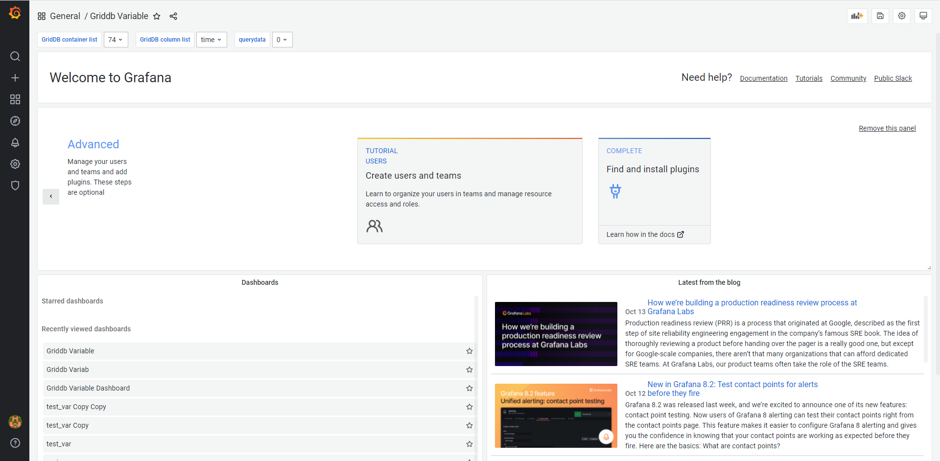 📝 We recommend that you use Grafana v8.5 or v9.3. The GridDB input plugin doesn't support Grafana v9.4 and above.