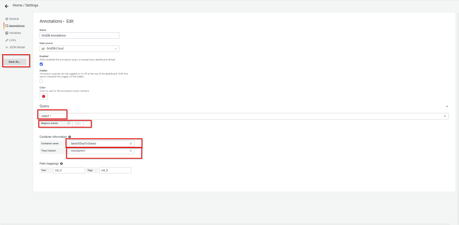 Currently, the GridDB input plugin supports two annotation types, i.e., annotation and region annotation. The region annotation is used for a container with multiple time columns (e.g., Multiple_Time_Columns).
