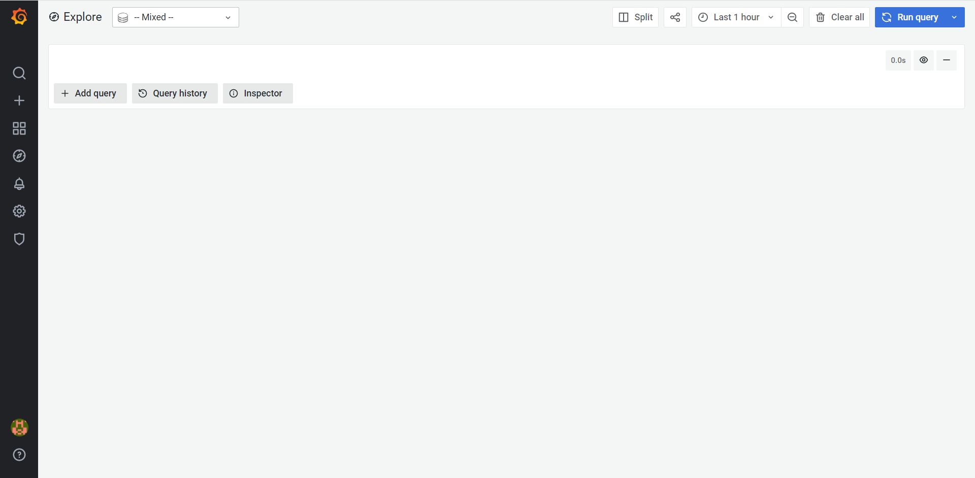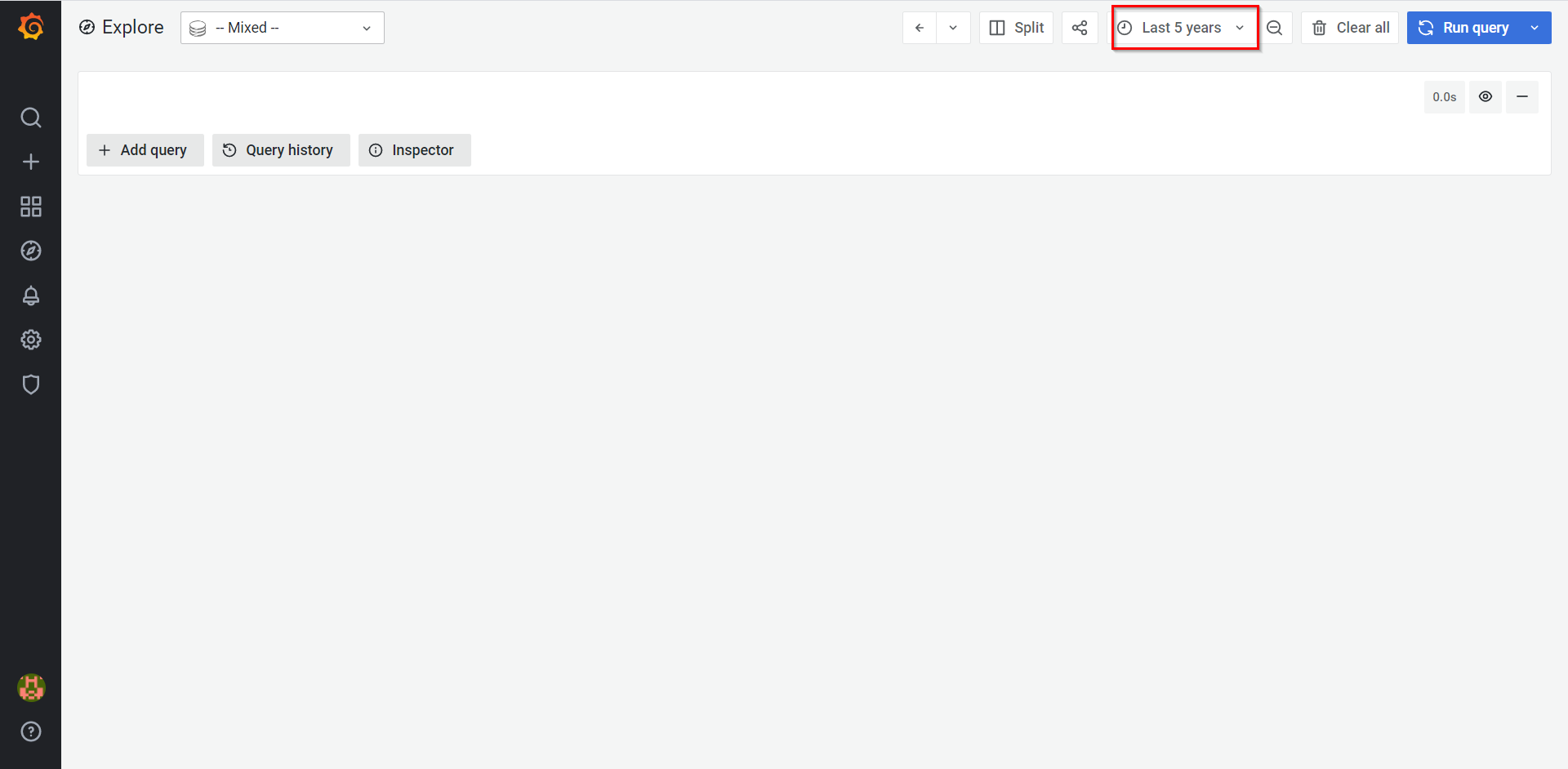 Explore screen with a time range obtained from a visualization dashboard Add a query in a similar manner to the way that you have added a query in steps 4, 5, and 7 in the section Creating a dashboard for visualization.