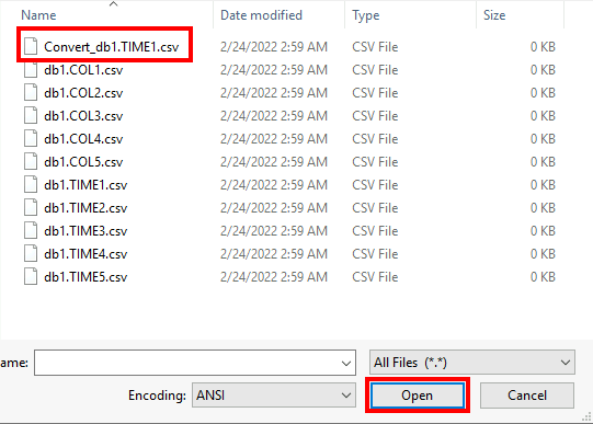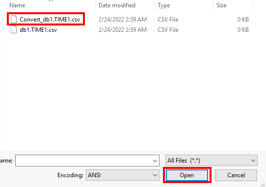 Once it is selected, a file browser where a data file can be selected to open it will appear. Select the data file to be imported and press [Open].