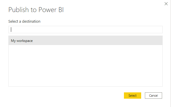 Select the data set to be published to the Power BI Service and publish it by pressing [Select].