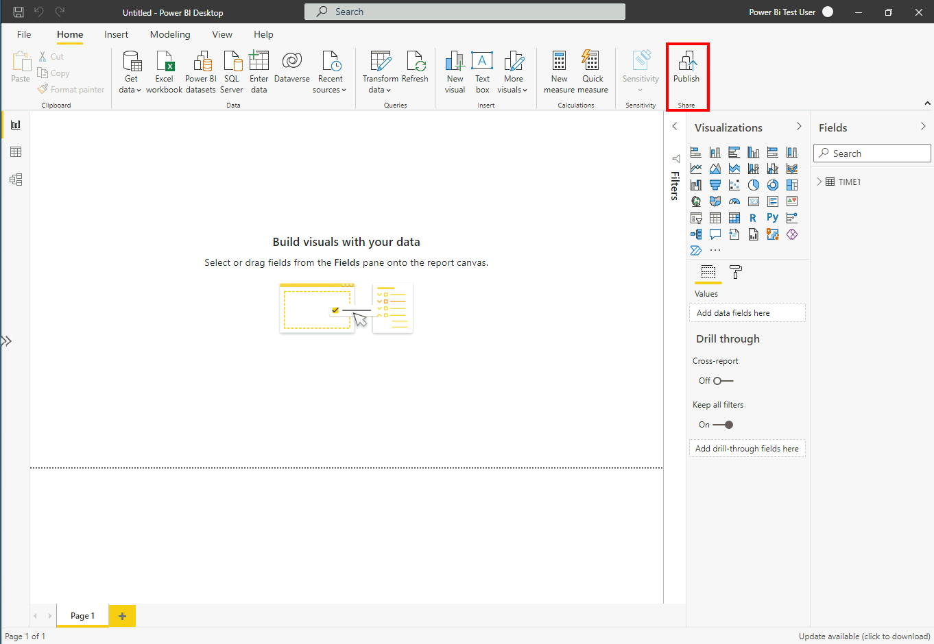 Select [Publish] on the ribbon in Power BI Desktop on a Windows VM.