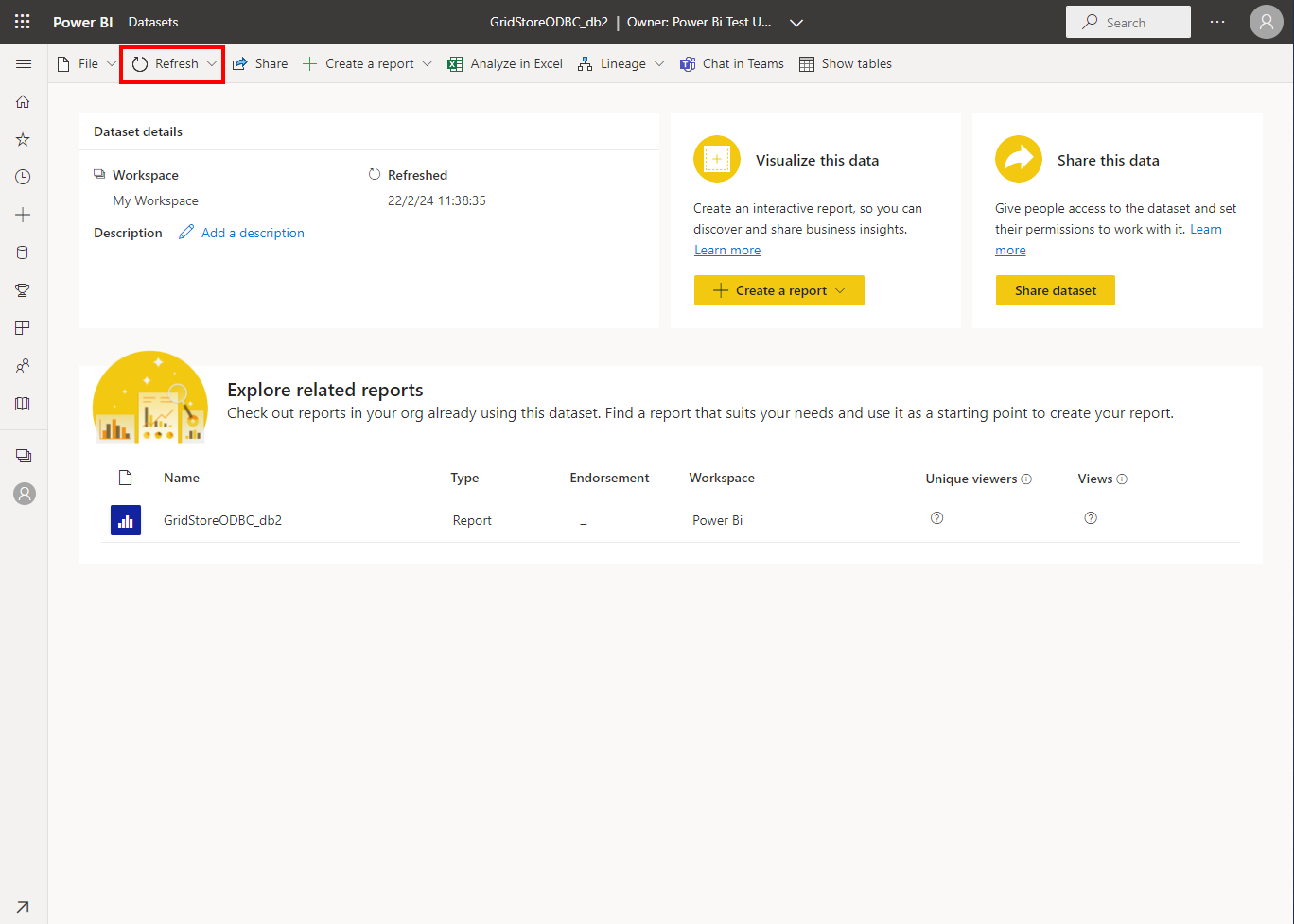 Work with the data set uploaded to the Power BI Service and the on-premises data gateway.