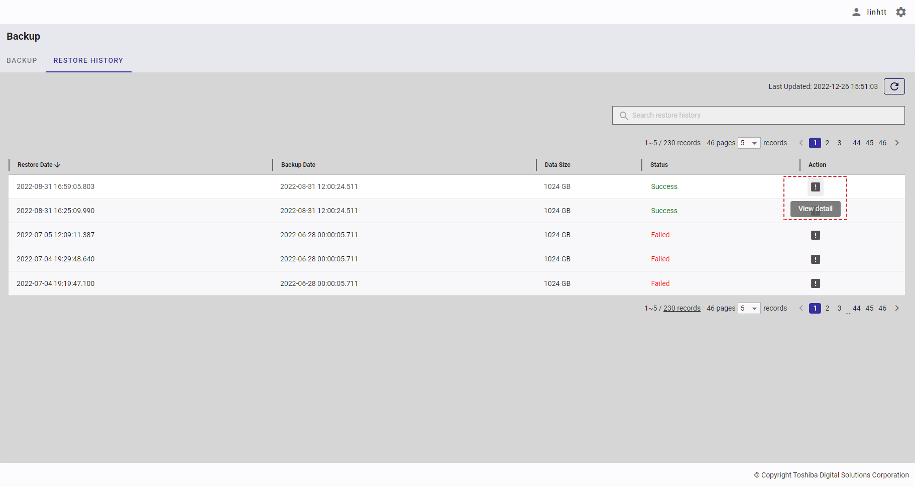 ステップ1: リストア結果を表示するには、 Actionカラムの [View detail] ボタンをクリックします。