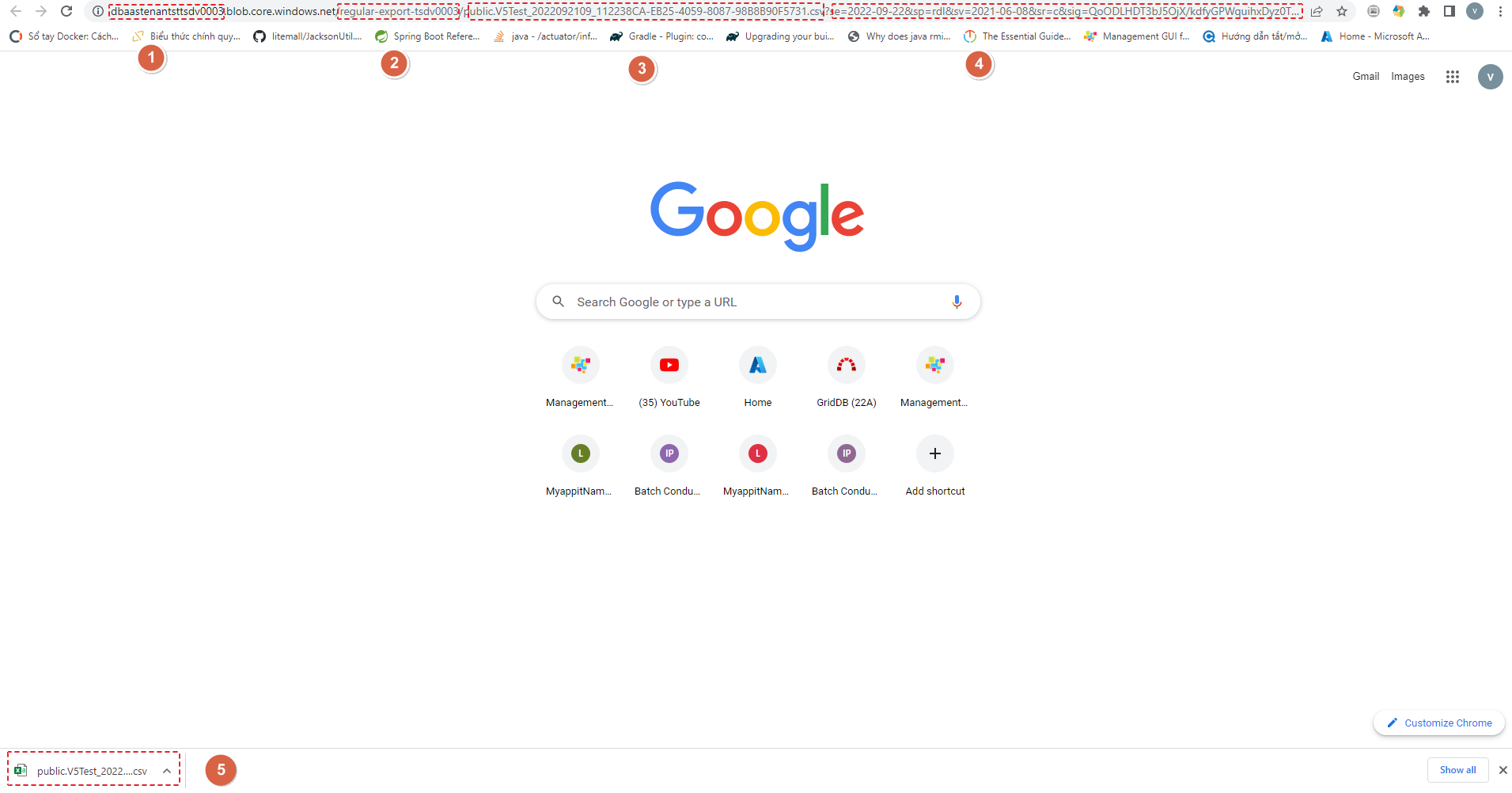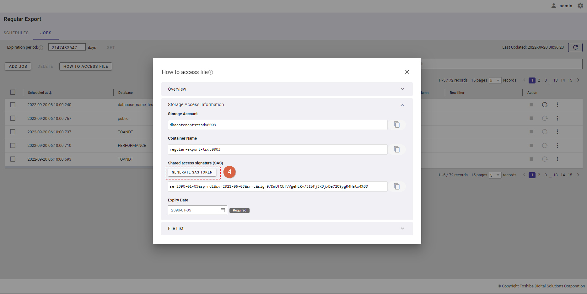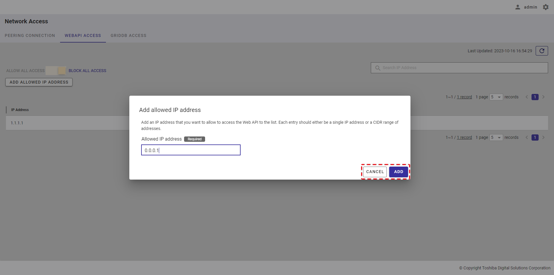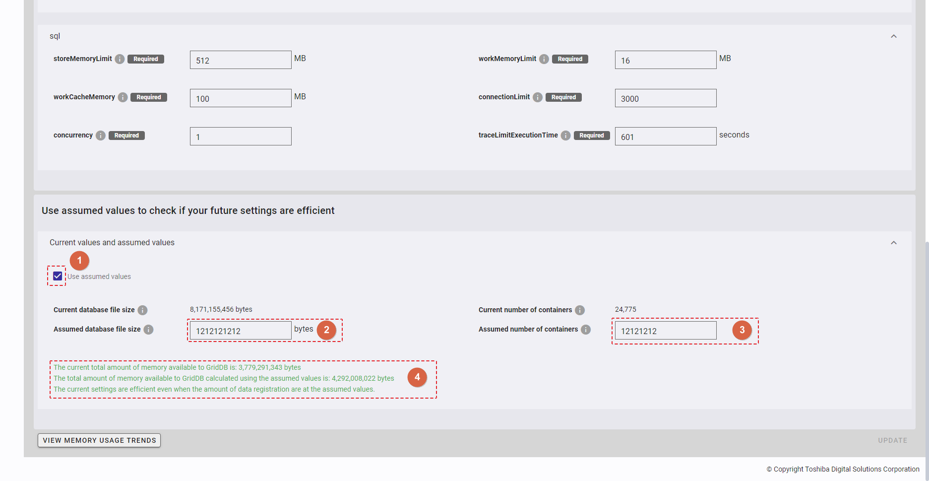 - GridDB WebAPI URL をクリップボードにコピーするには、 [Copy GridDB WebAPI URL] ボタン (⑤) をクリックします。