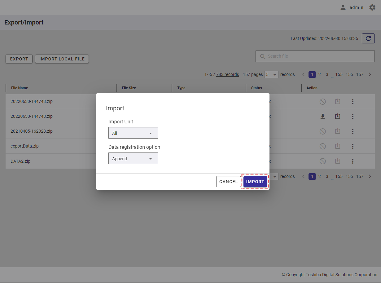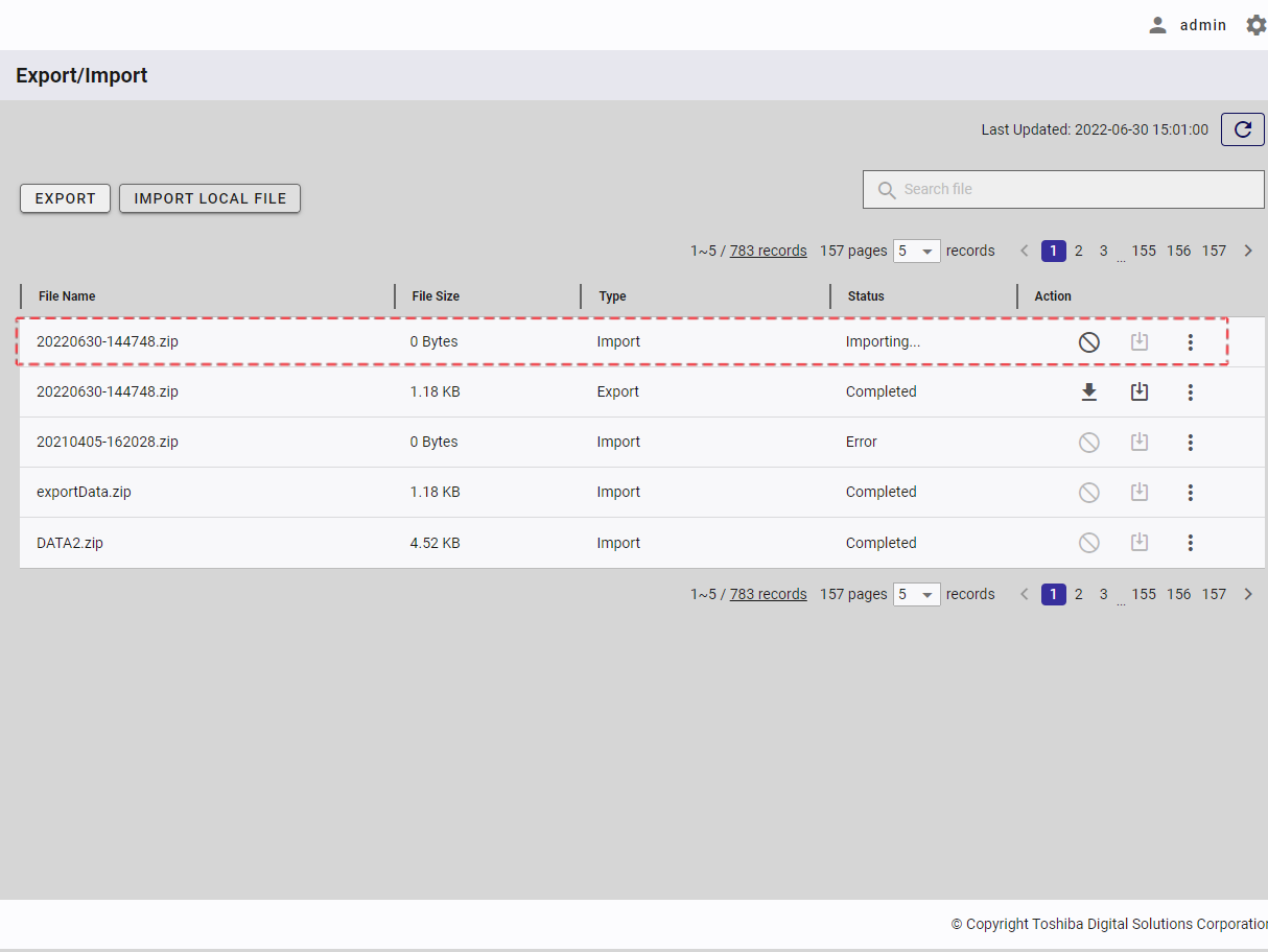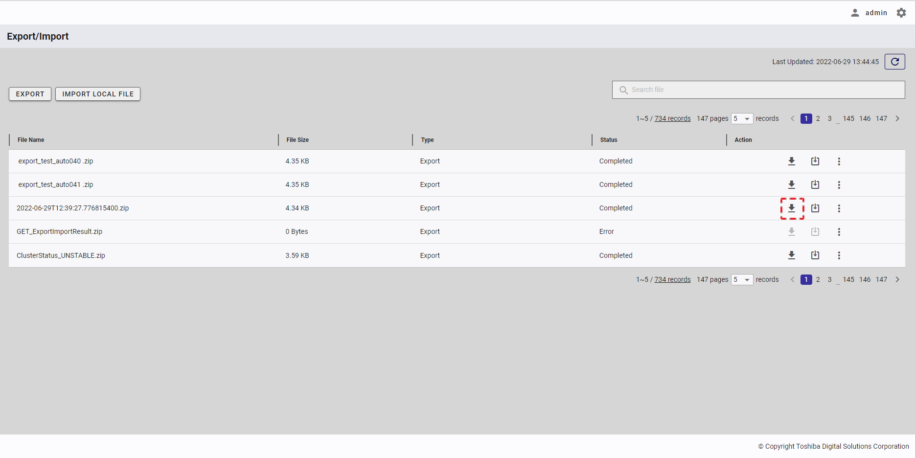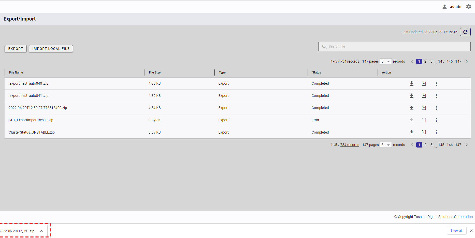 | 17 | Export/Import | 最新ステータスのエクスポートタスクおよびインポートタスクを一覧表示します。 | + | + |
