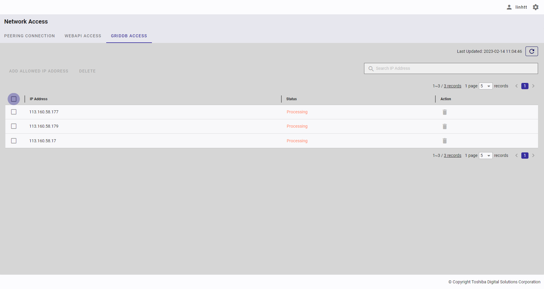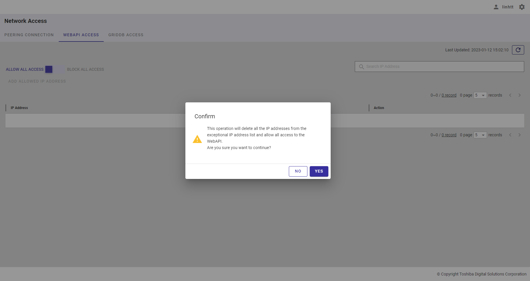 | 22 | GridDB access | GridDBにアクセス可能な全IPアドレスを一覧表示します。 | - | + |