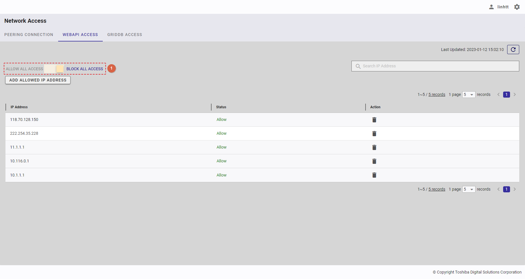 | 21 | WebAPI access | WebAPIにアクセス可能な全IPアドレスを一覧表示します。 | - | + |