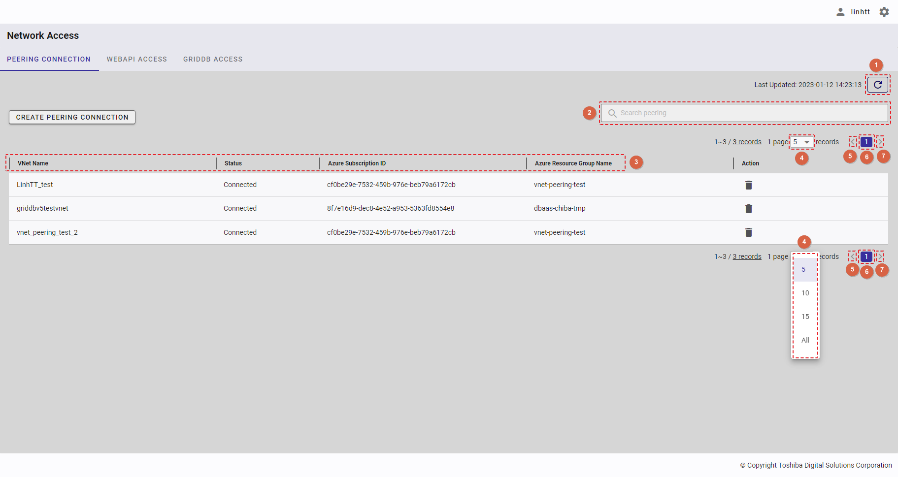 | 20 | Peering connection | すべてのピアリング接続を一覧表示します。 | - | + |