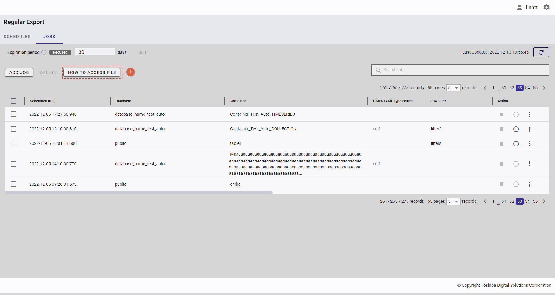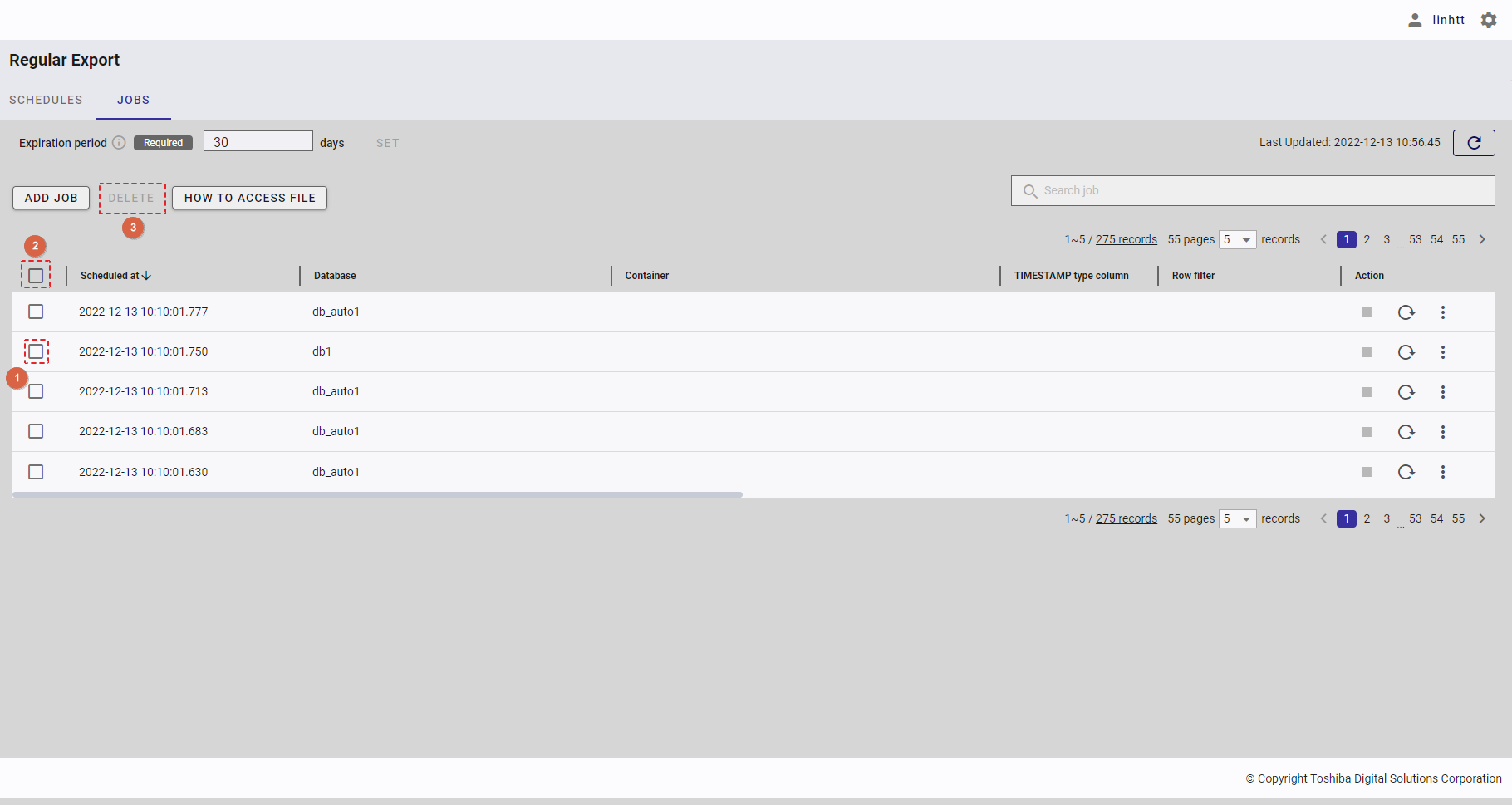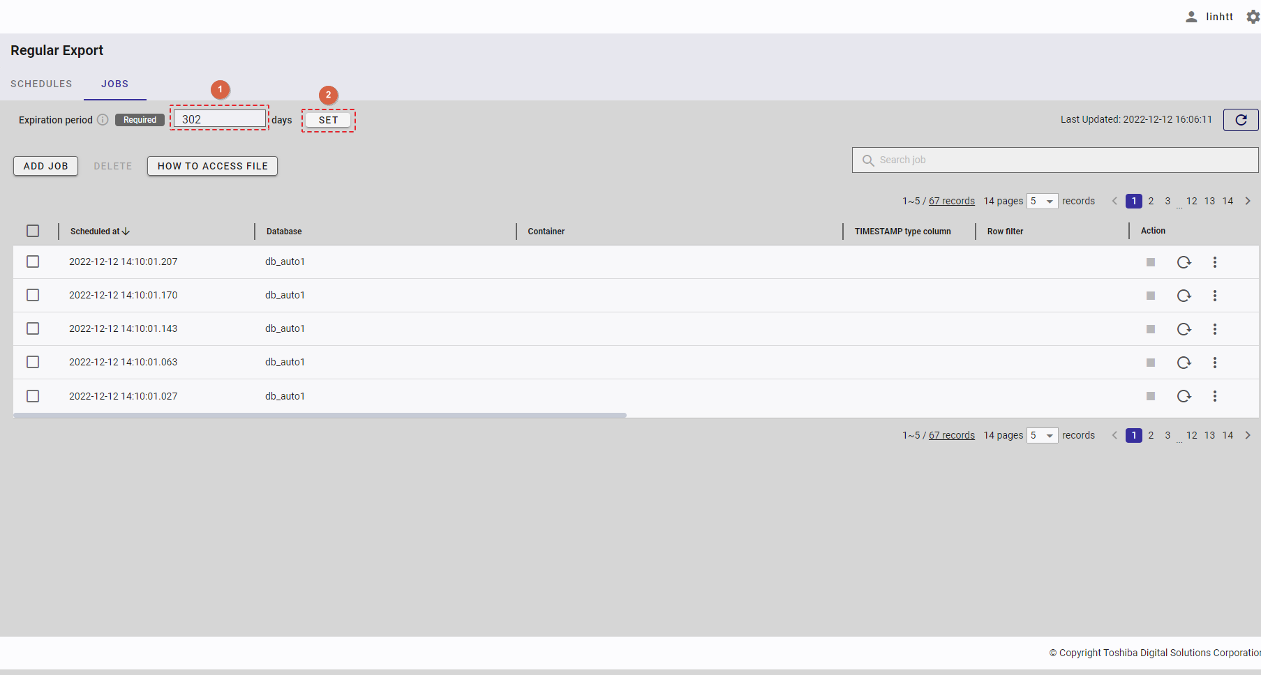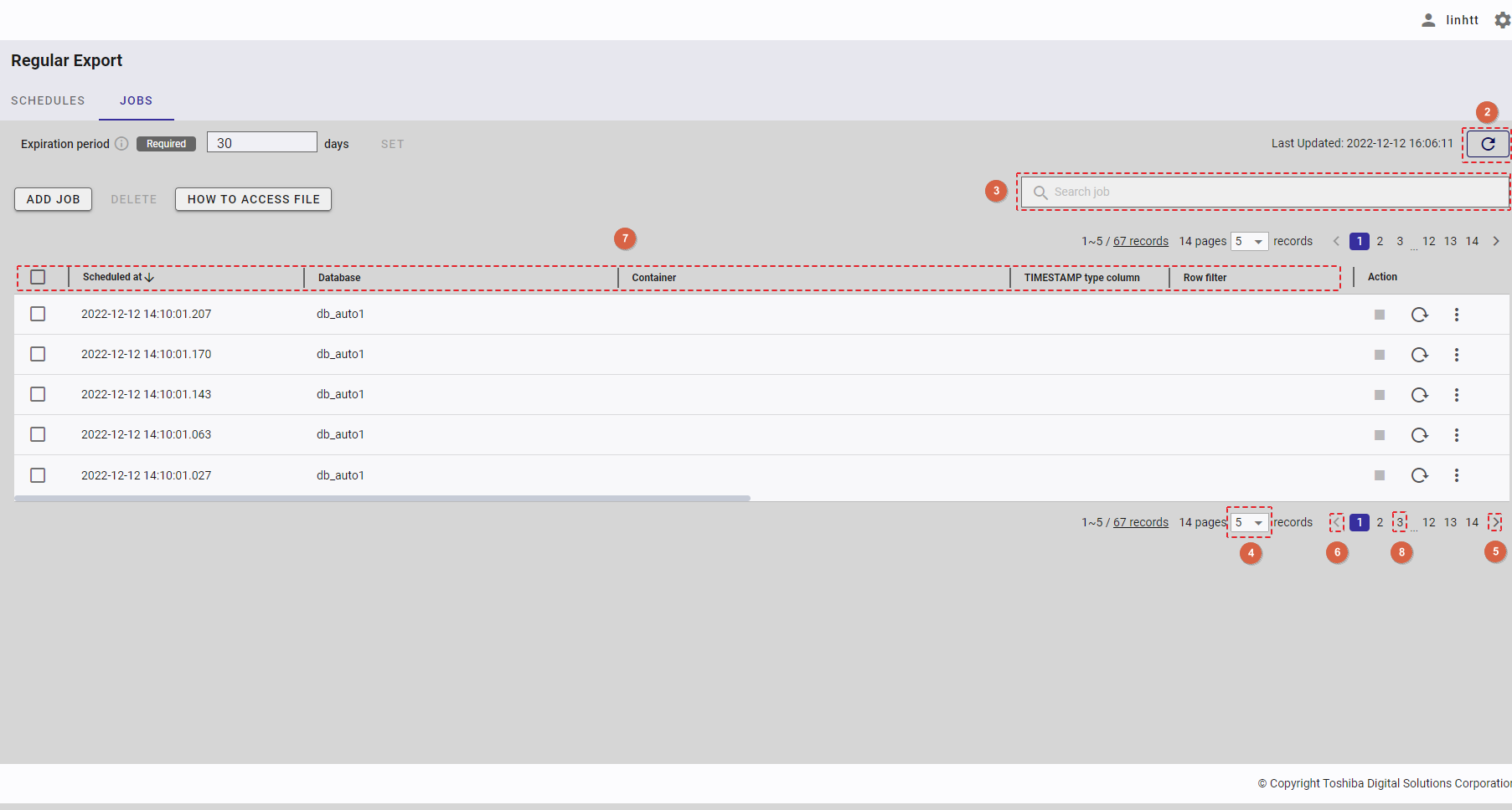 | 16 | Regular export job | 定期エクスポート・ジョブの一覧を表示します。 | + | + |
