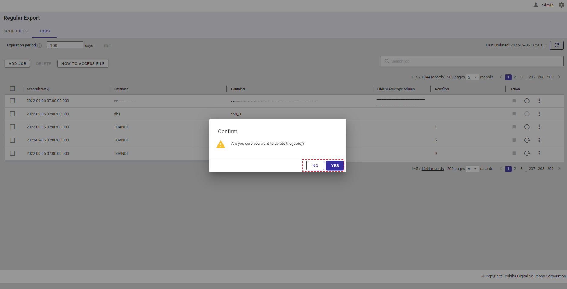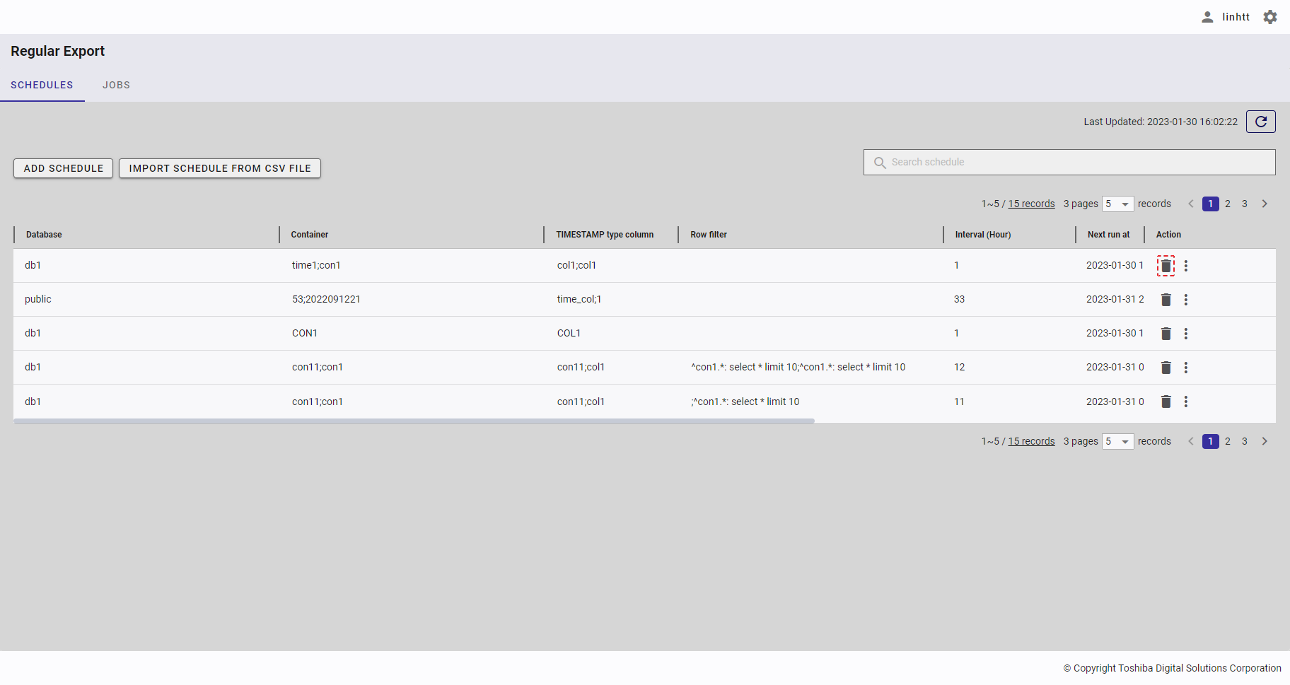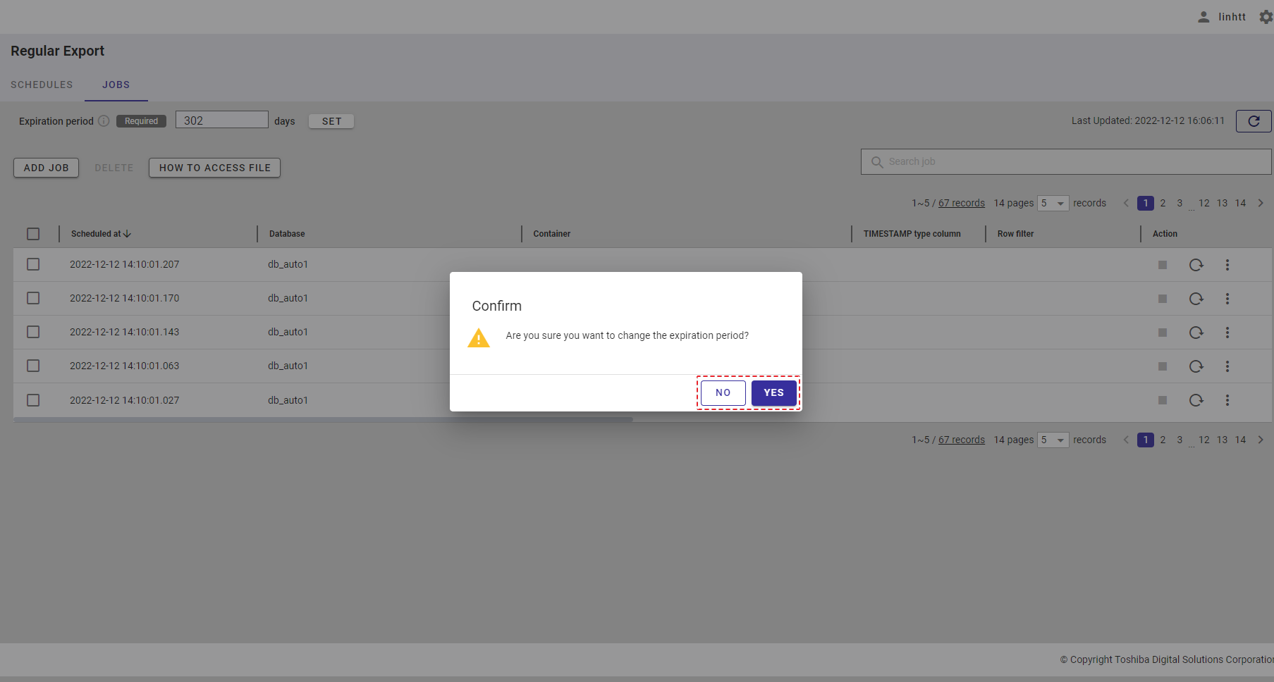 | 16 | Regular export job | 定期エクスポート・ジョブの一覧を表示します。 | + | + |