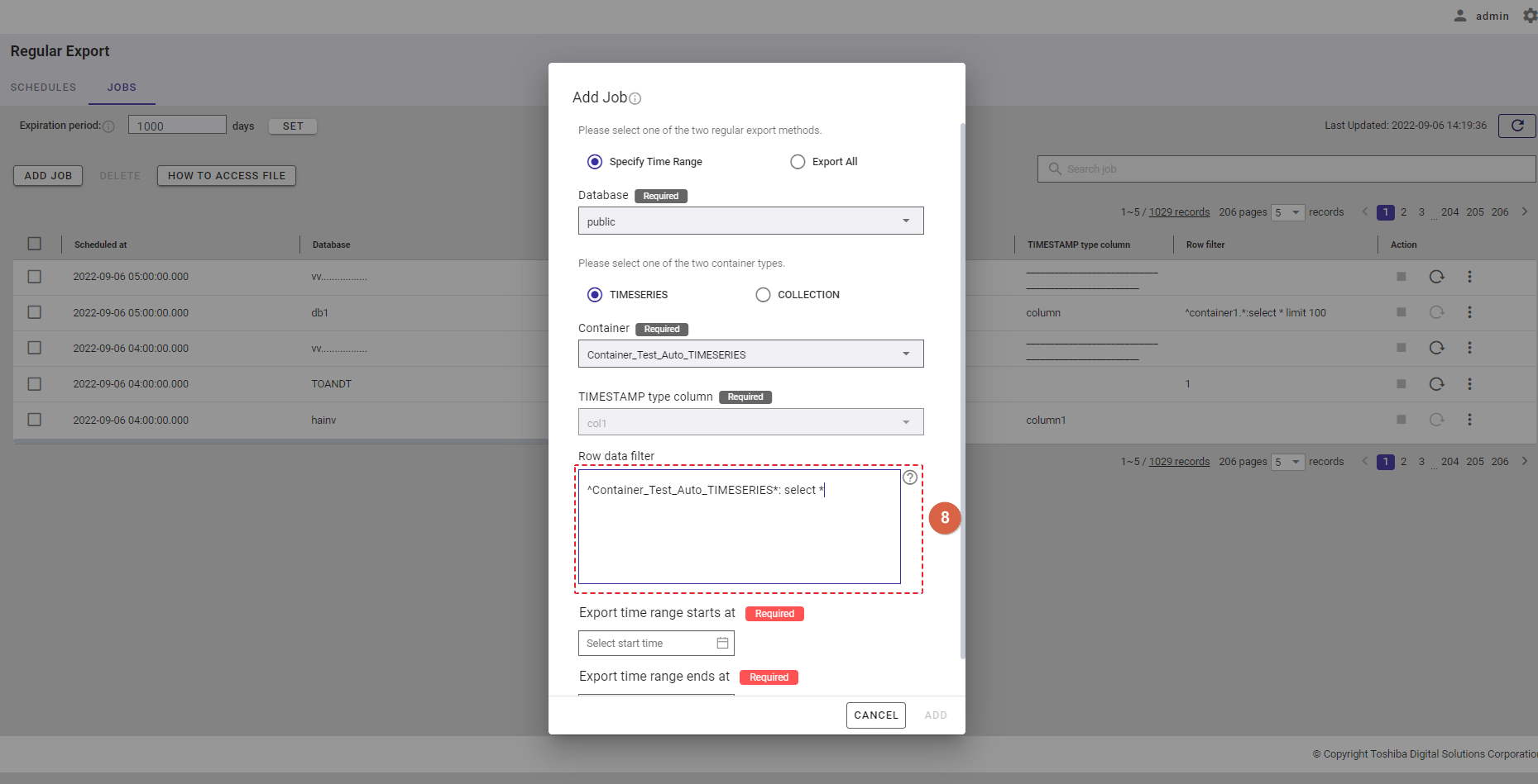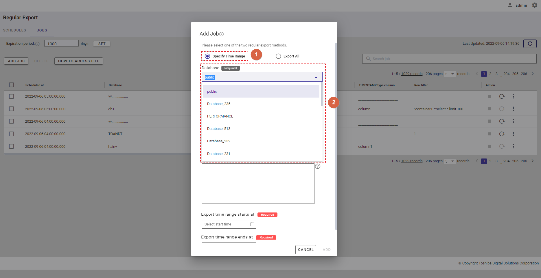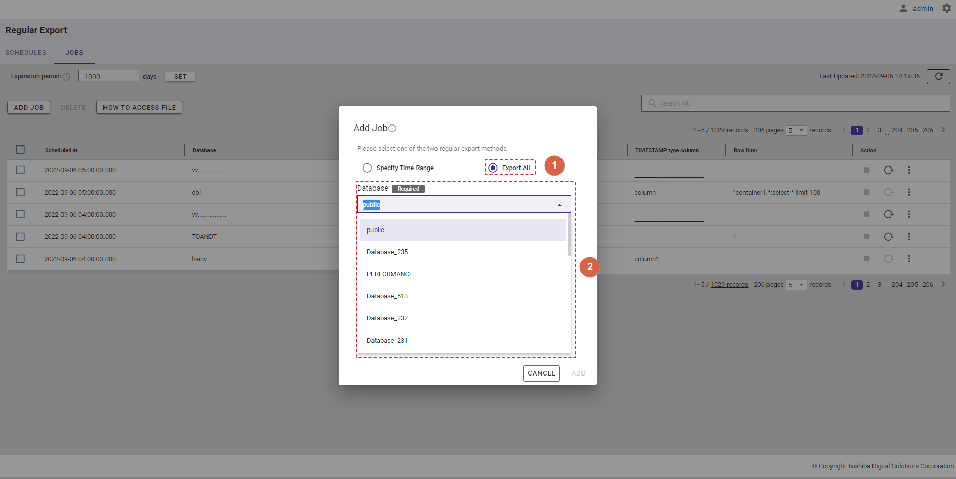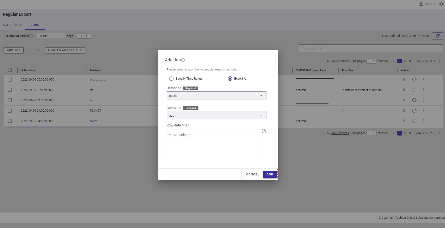 | 16 | Regular export job | 定期エクスポート・ジョブの一覧を表示します。 | + | + |
