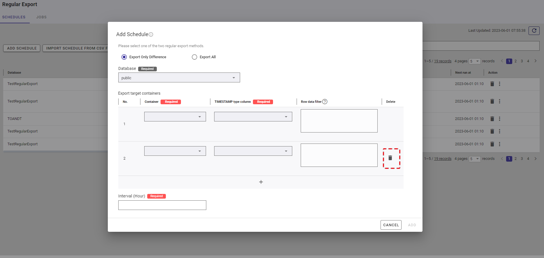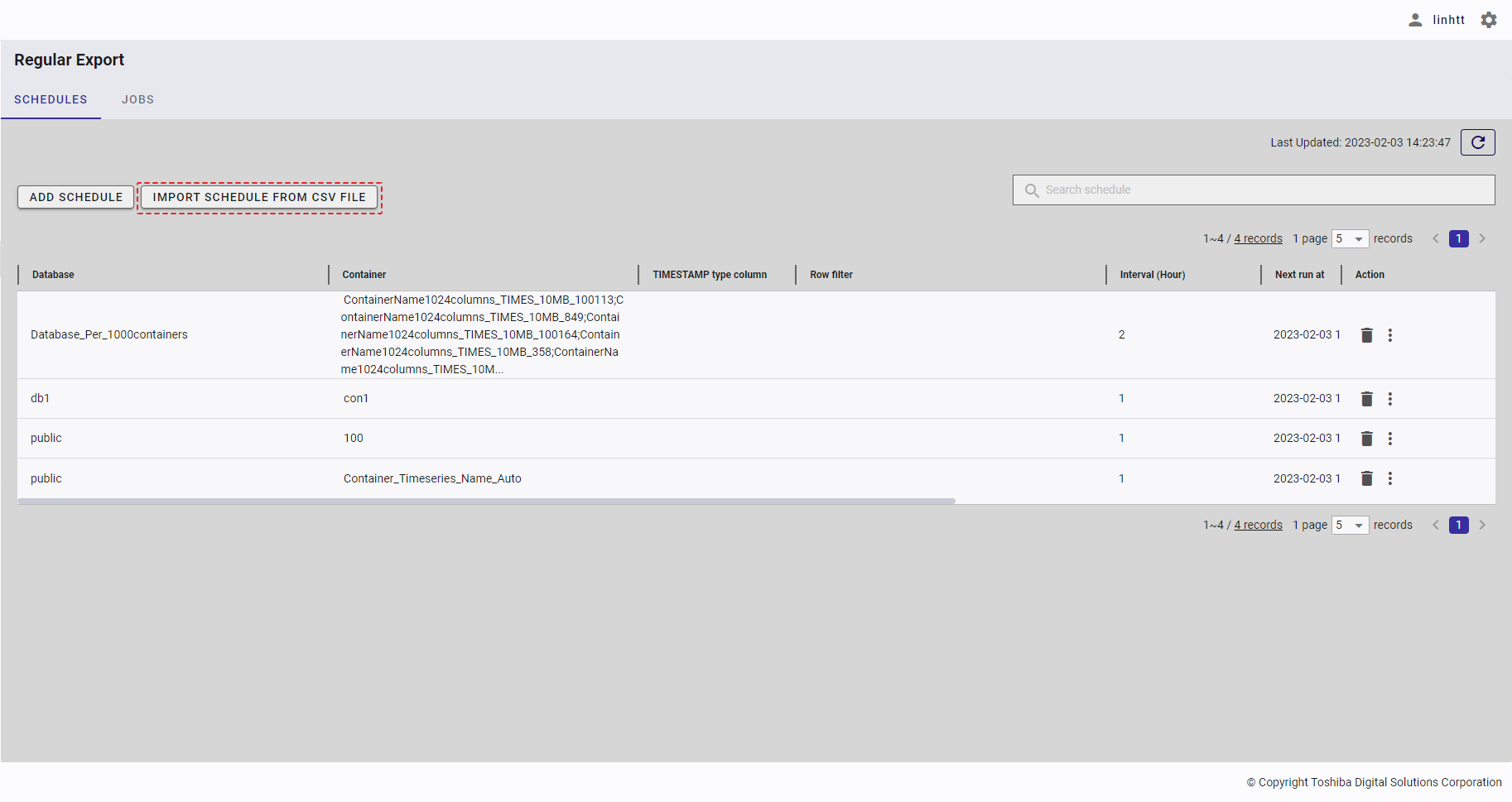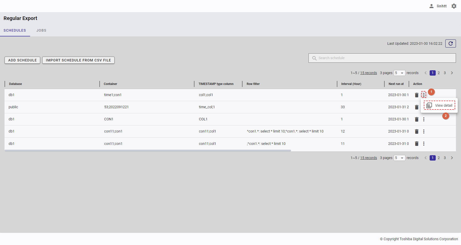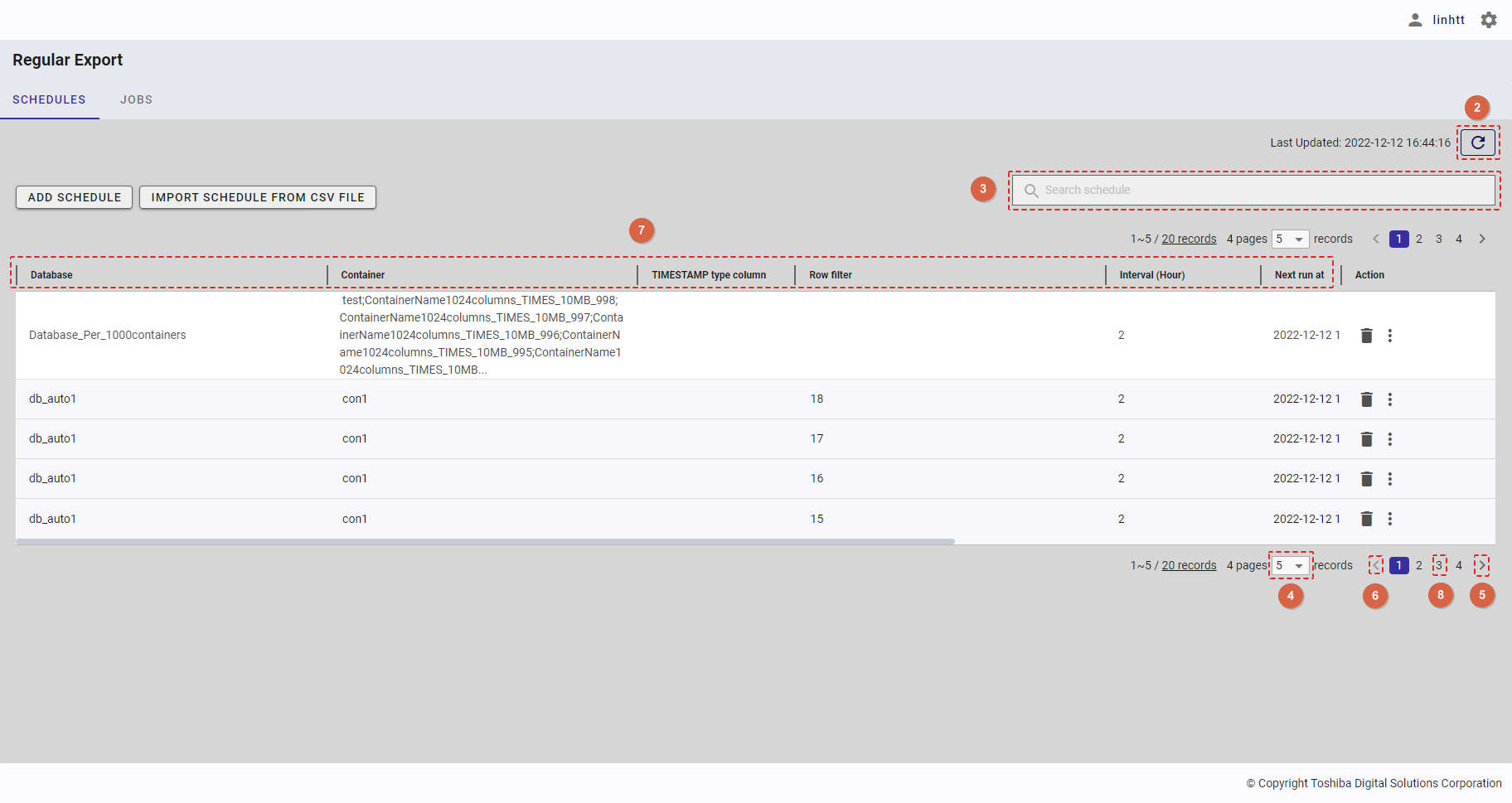 | 15 | Regular export schedule | 定期エクスポートのスケジュール一覧を表示します。 | + | + |