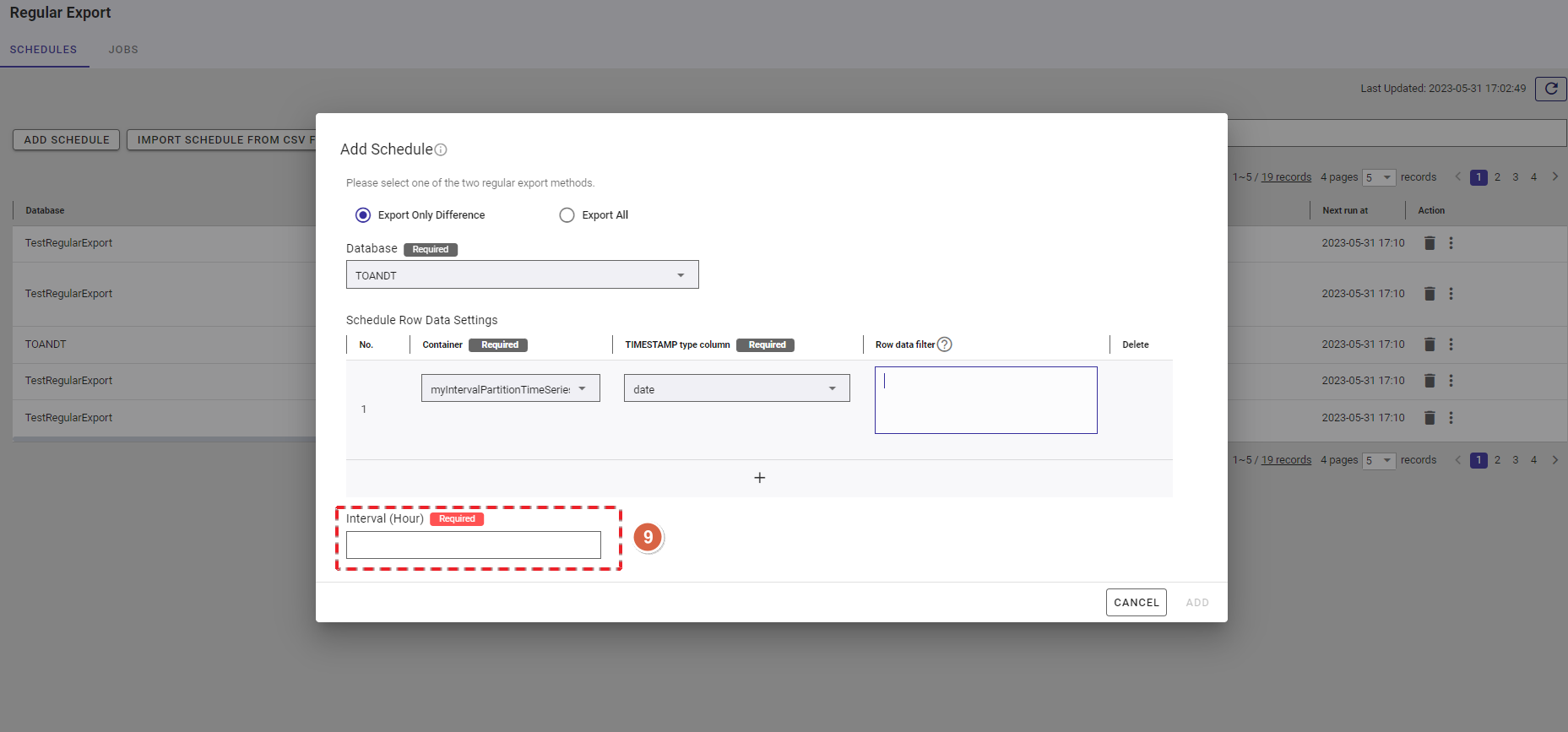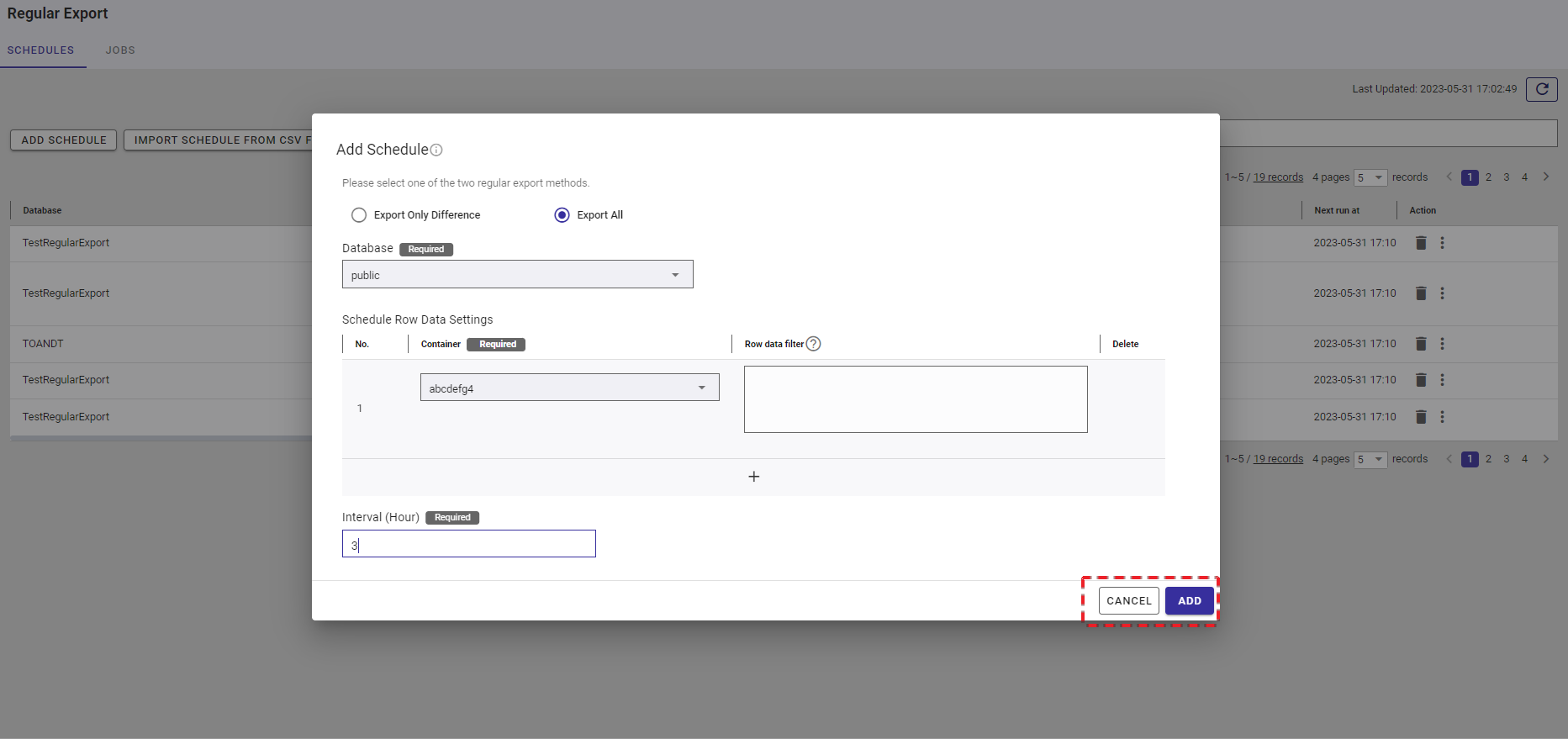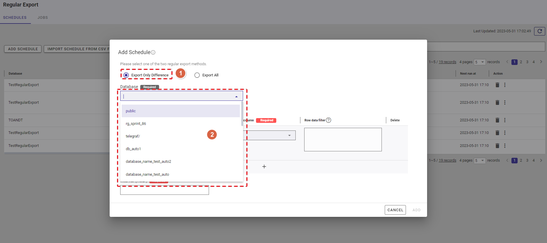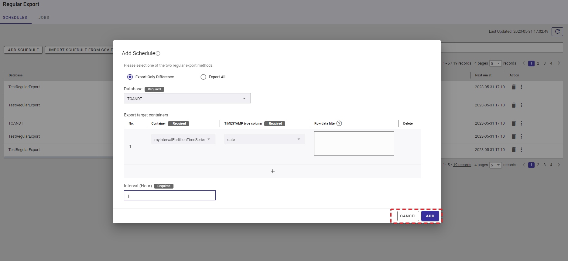 | 15 | Regular export schedule | 定期エクスポートのスケジュール一覧を表示します。 | + | + |