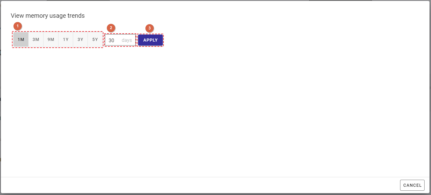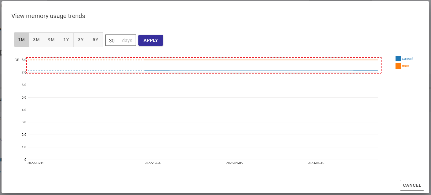 - [View memory usage trends] ダイアログのサイズを小さくすると、X軸とY軸の内容が小さくなり見えづらくなります。