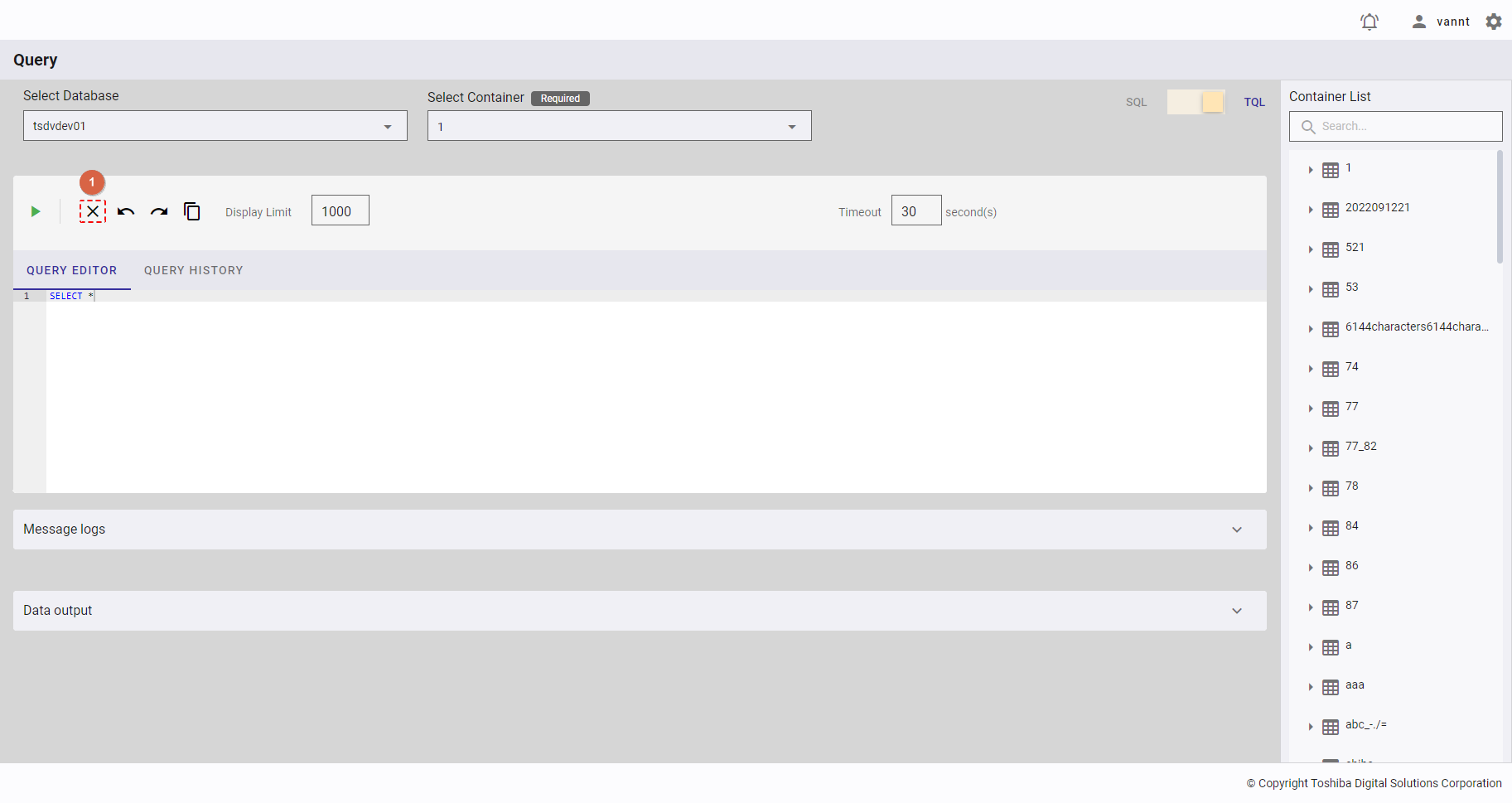 - SQL/TQLモードを切り替えると、エディタのredo/undo操作を行うことができなくなります。(クエリアクションを参照).