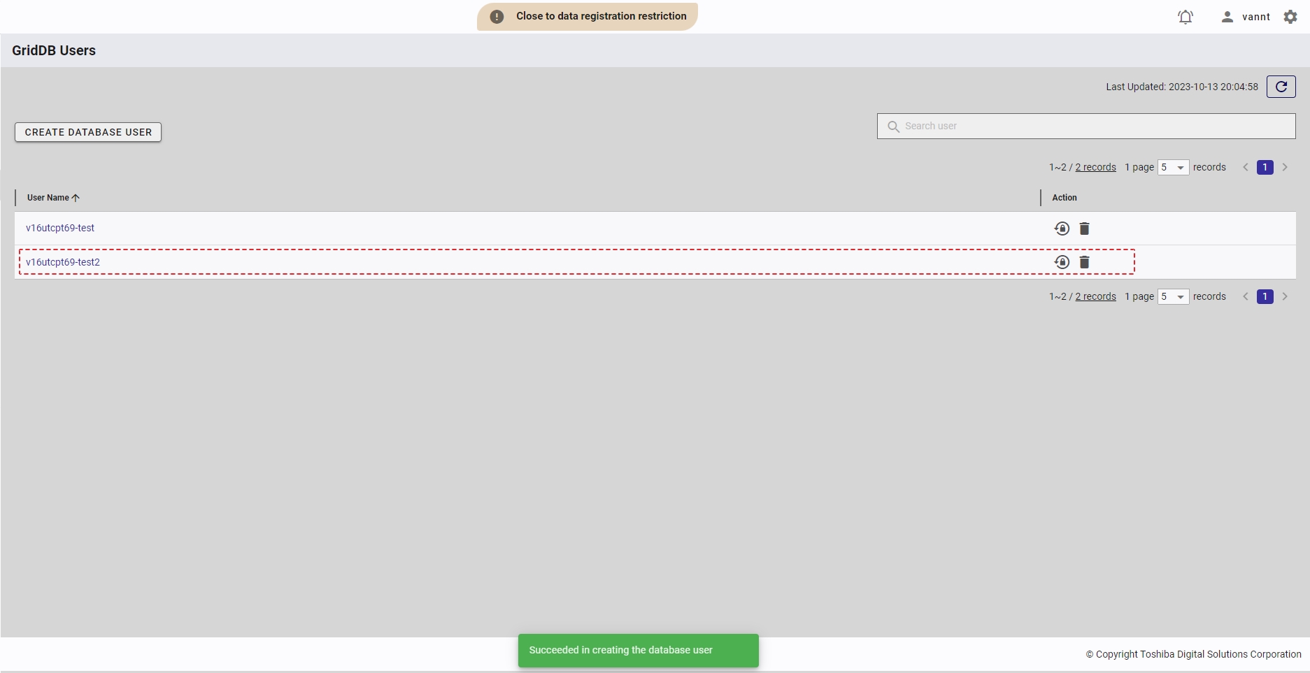 | 12 | GridDB user management | すべてのGridDBユーザを表示します。 | - | + |